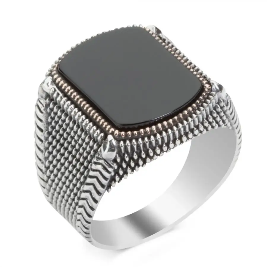 925 пробы Серебряное мужское кольцо с черным ониксом обычное кольцо с черным камнем для мужчин кольцо с ониксом
