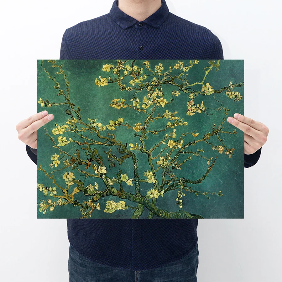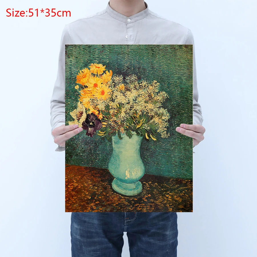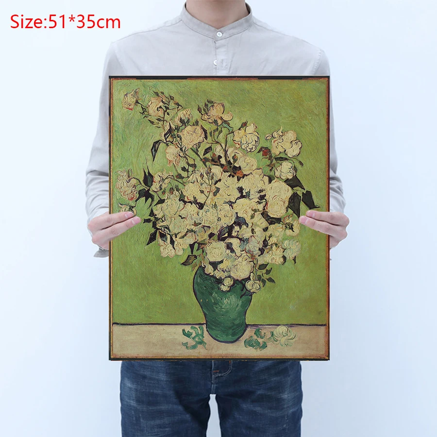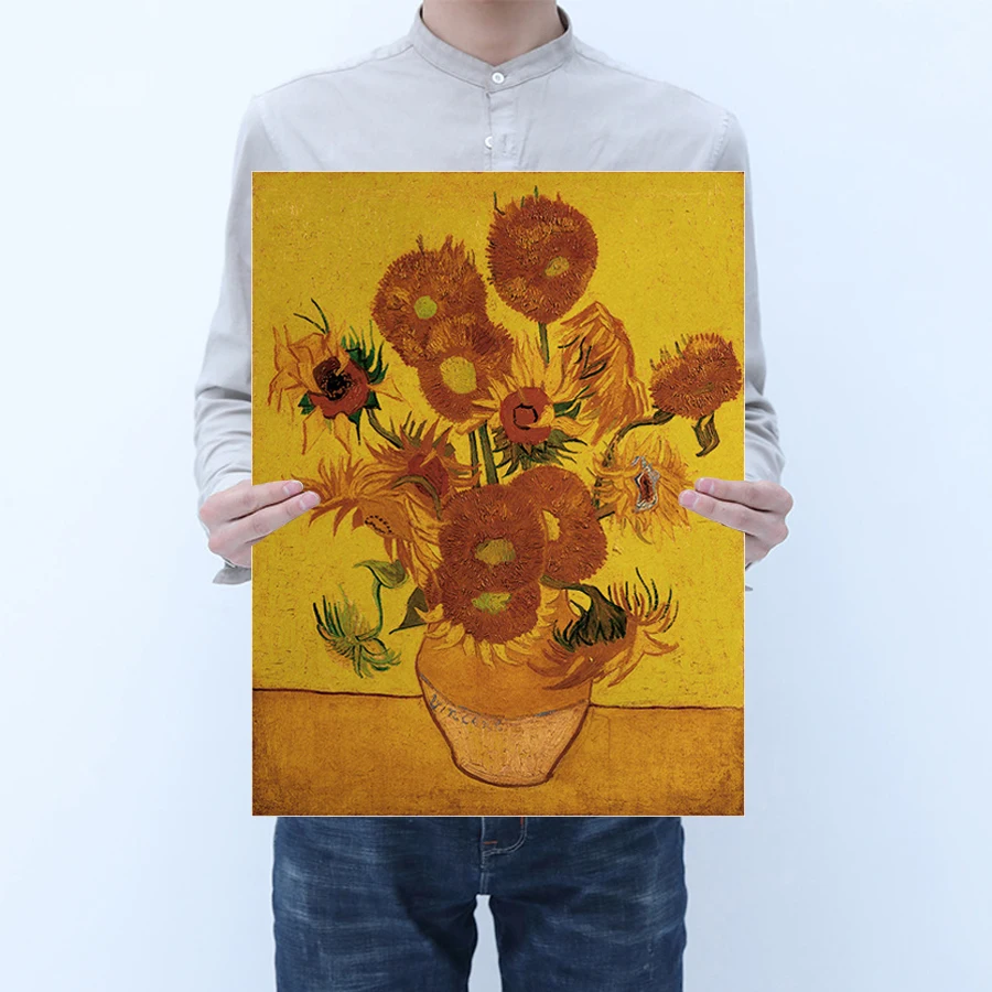 Винтажная картина, крафт-бумага, Постер для дома, ромашки, розы, Подсолнухи, Автопортрет, картина маслом, декоративная настенная наклейка 51*35 см