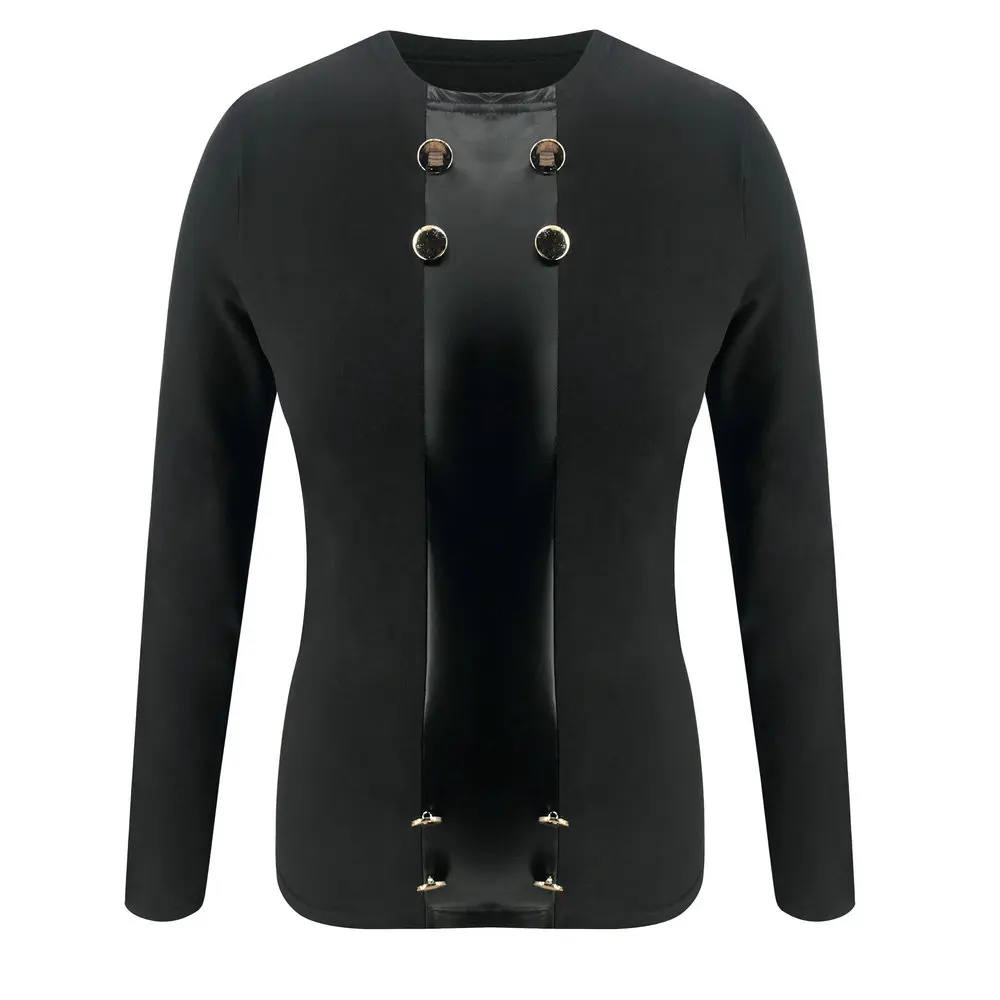 Новые женские облегающие топы с круглым вырезом и длинными рукавами на пуговицах, модная эластичная рубашка
