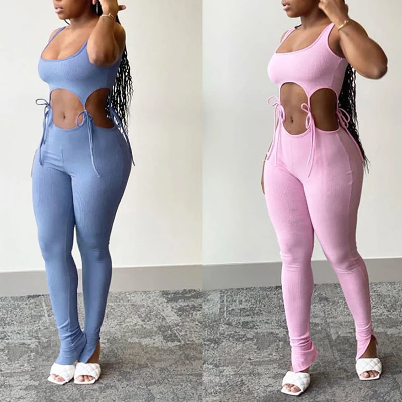 Комплект из двух предметов OMSJ Женский, облегающий укороченный топ и леггинсы, модный однотонный комплект для фитнеса, с вырезами, лето 2021