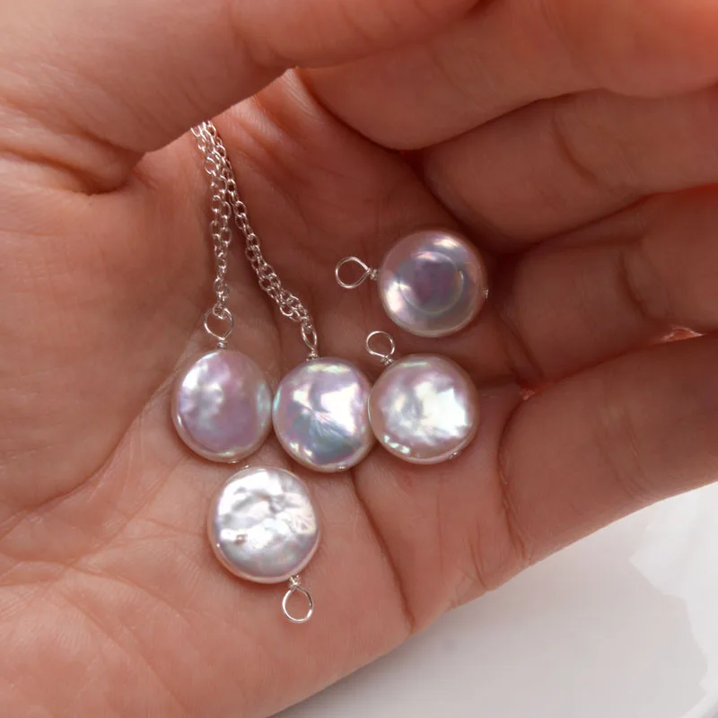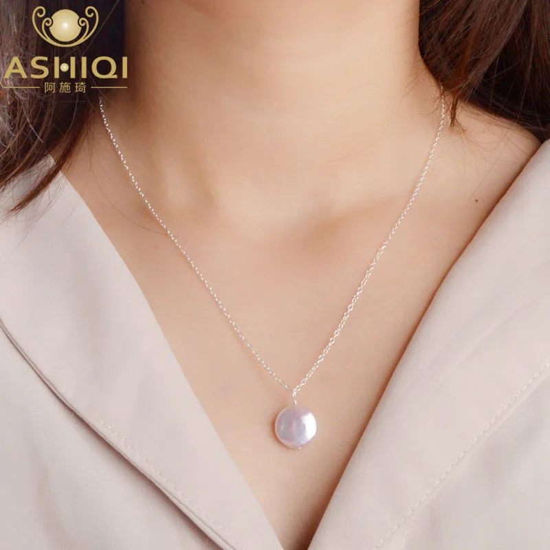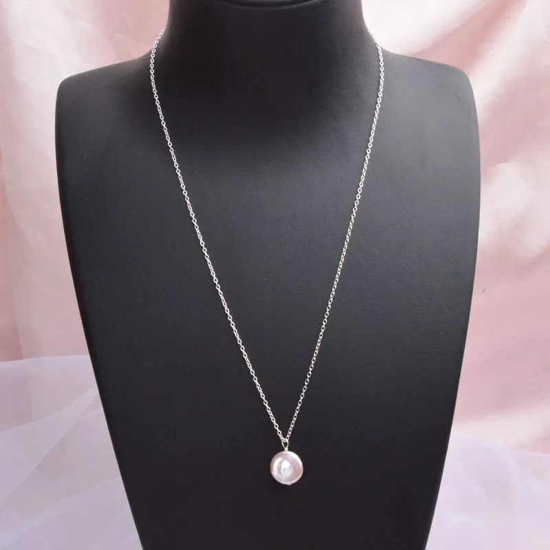 Ожерелье женское из серебра натуральная пуговица пробы с пресноводным жемчугом 12-13 мм