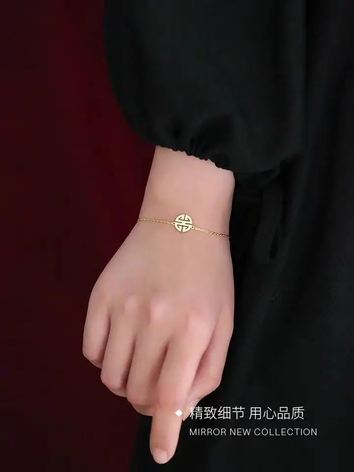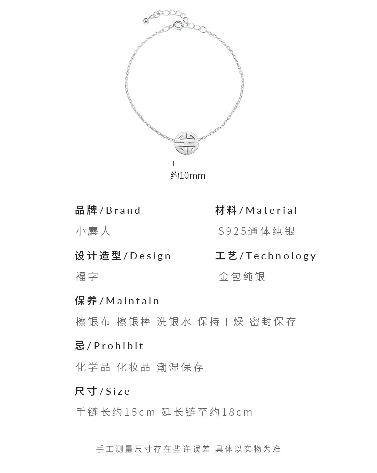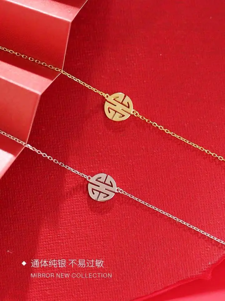 Простой креативный браслет с символом благословения из стерлингового серебра 925 пробы, Индивидуальные ювелирные изделия, браслет в китайском стиле для счастливых женщин