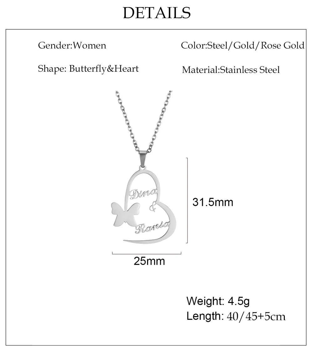 Индивидуальное ожерелье с двойным именем бабочки, женское ожерелье ...