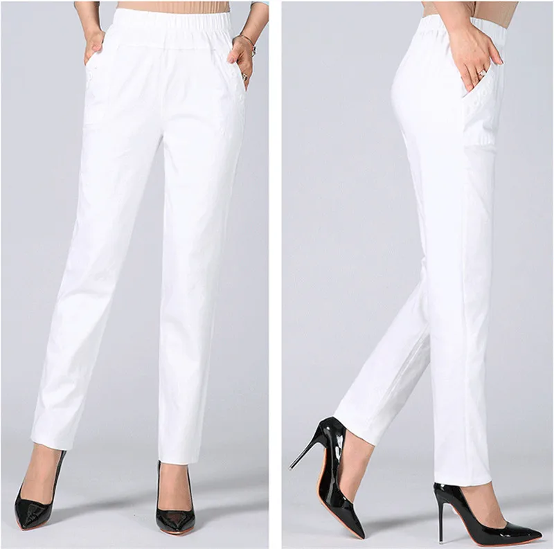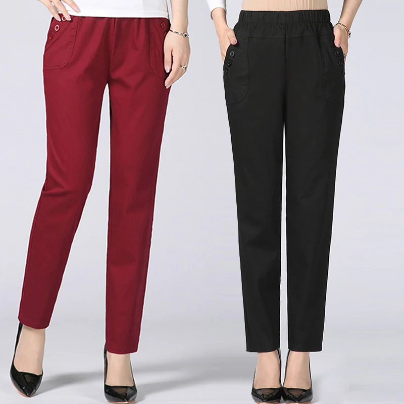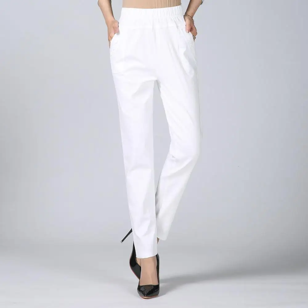 Брюки женские хлопковые, однотонные, большого размера, с эластичной талией, на веснулето, W1846, размера плюс размер 5XL