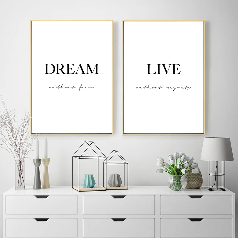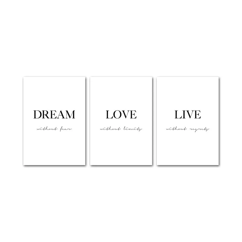 Черно-белые Плакаты мечта Live принты с принтом в виде надписи Love...