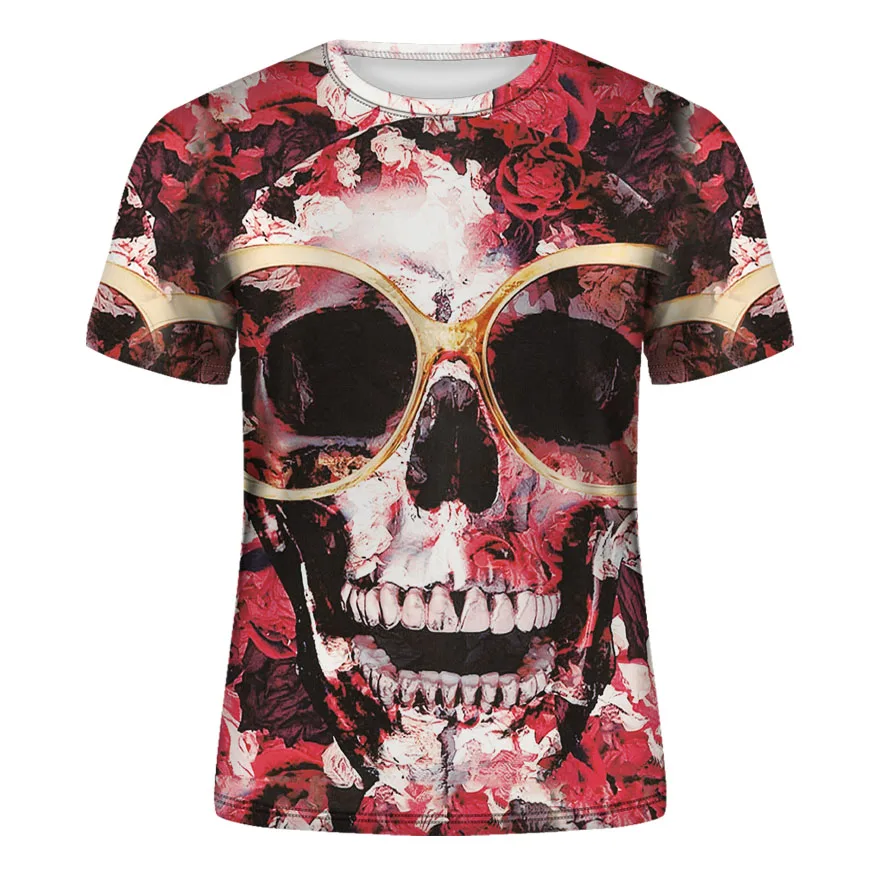 Мужская футболка с коротким рукавом и 3D принтом черепа, летний тре...