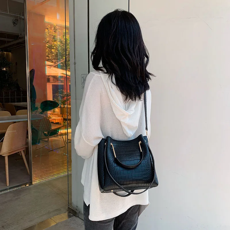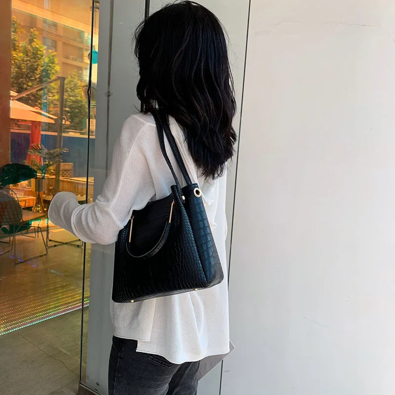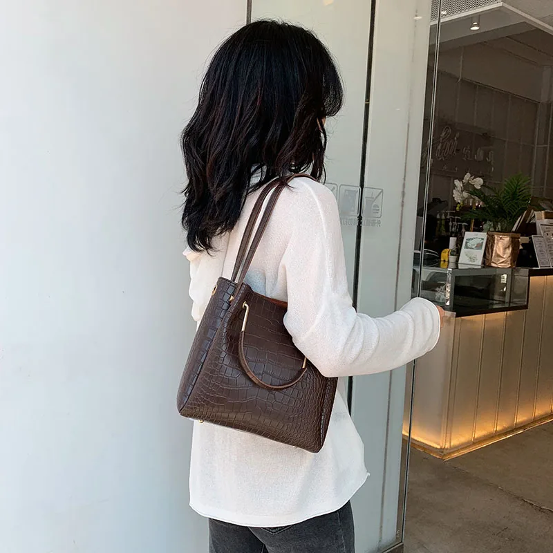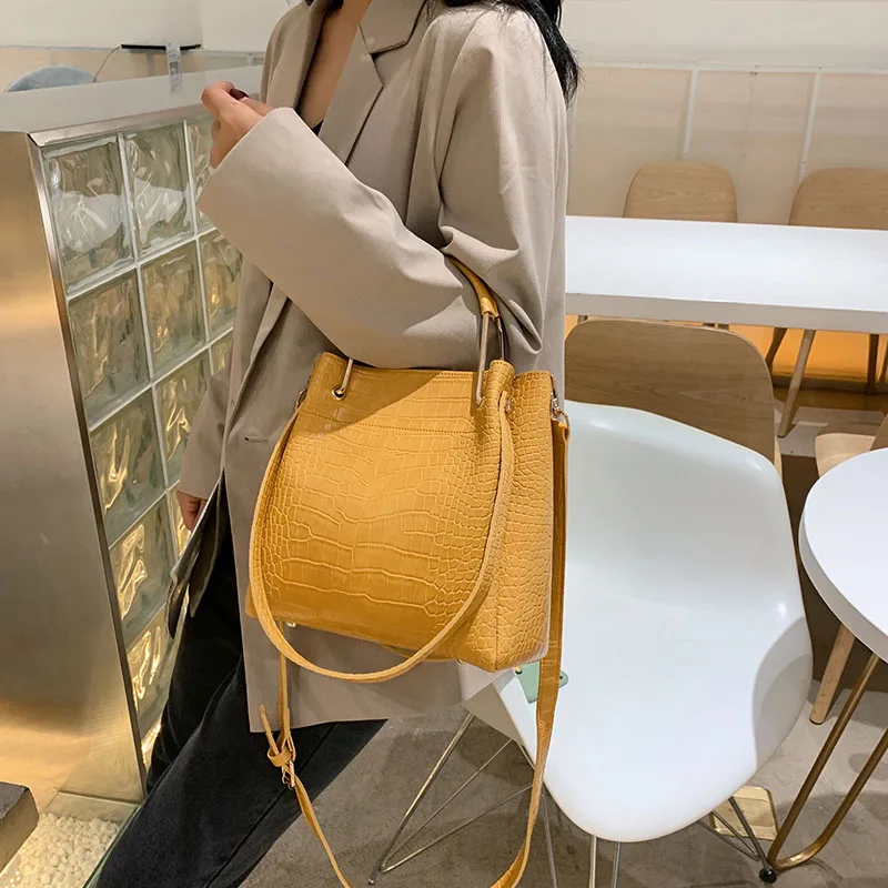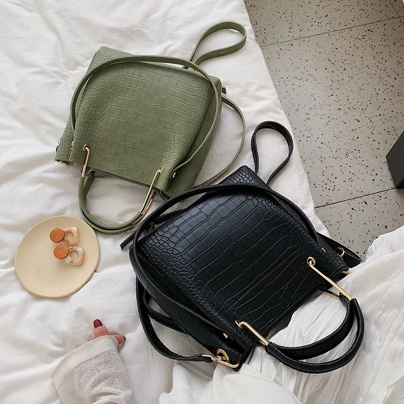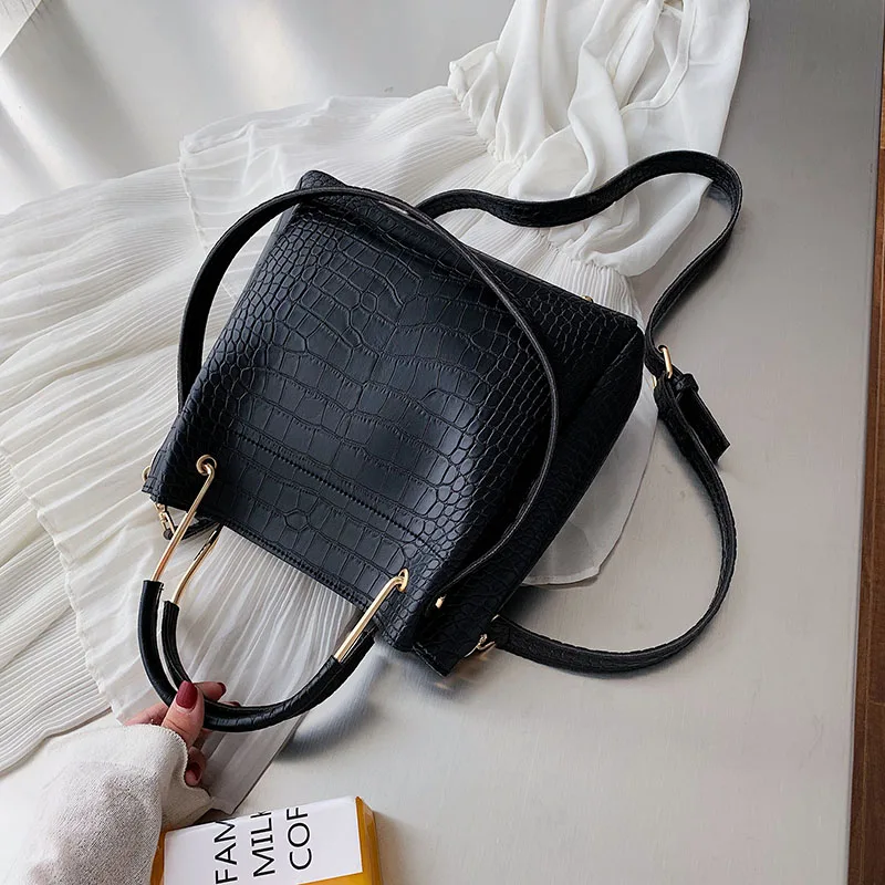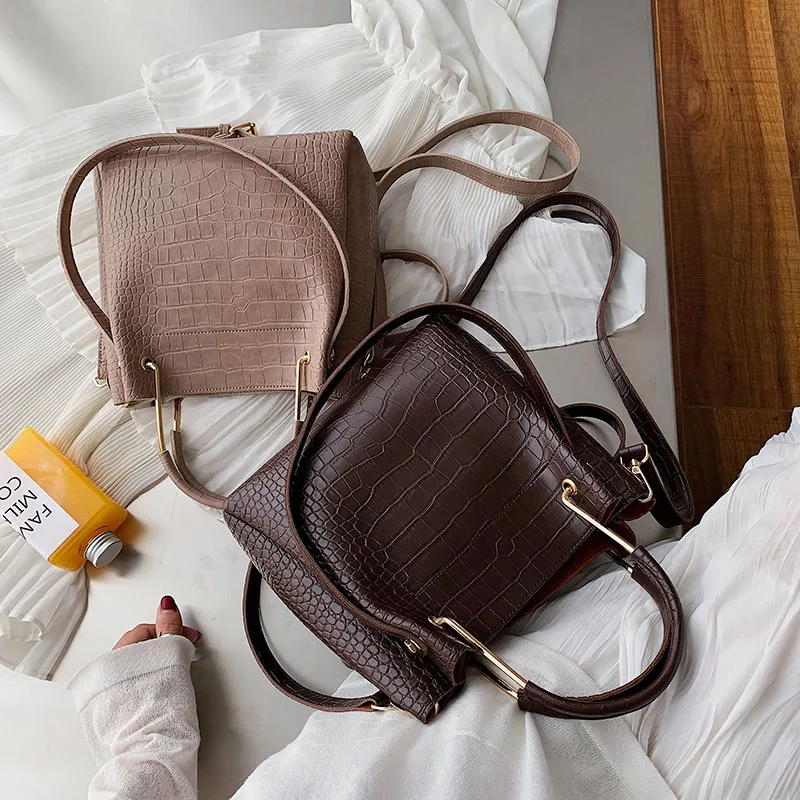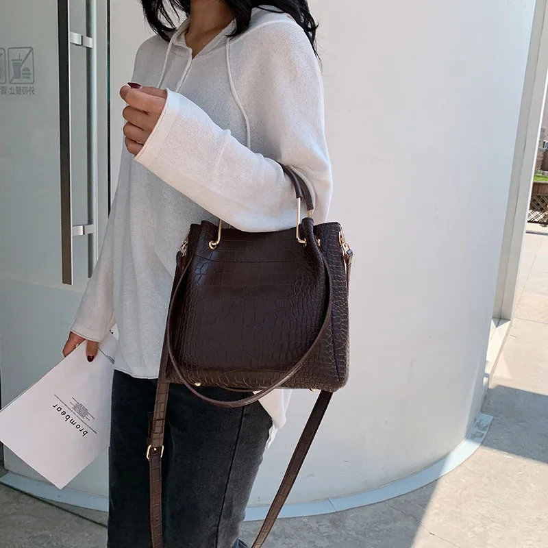 Сумка-мешок женская из искусственной кожи, на молнии, с каменным узором