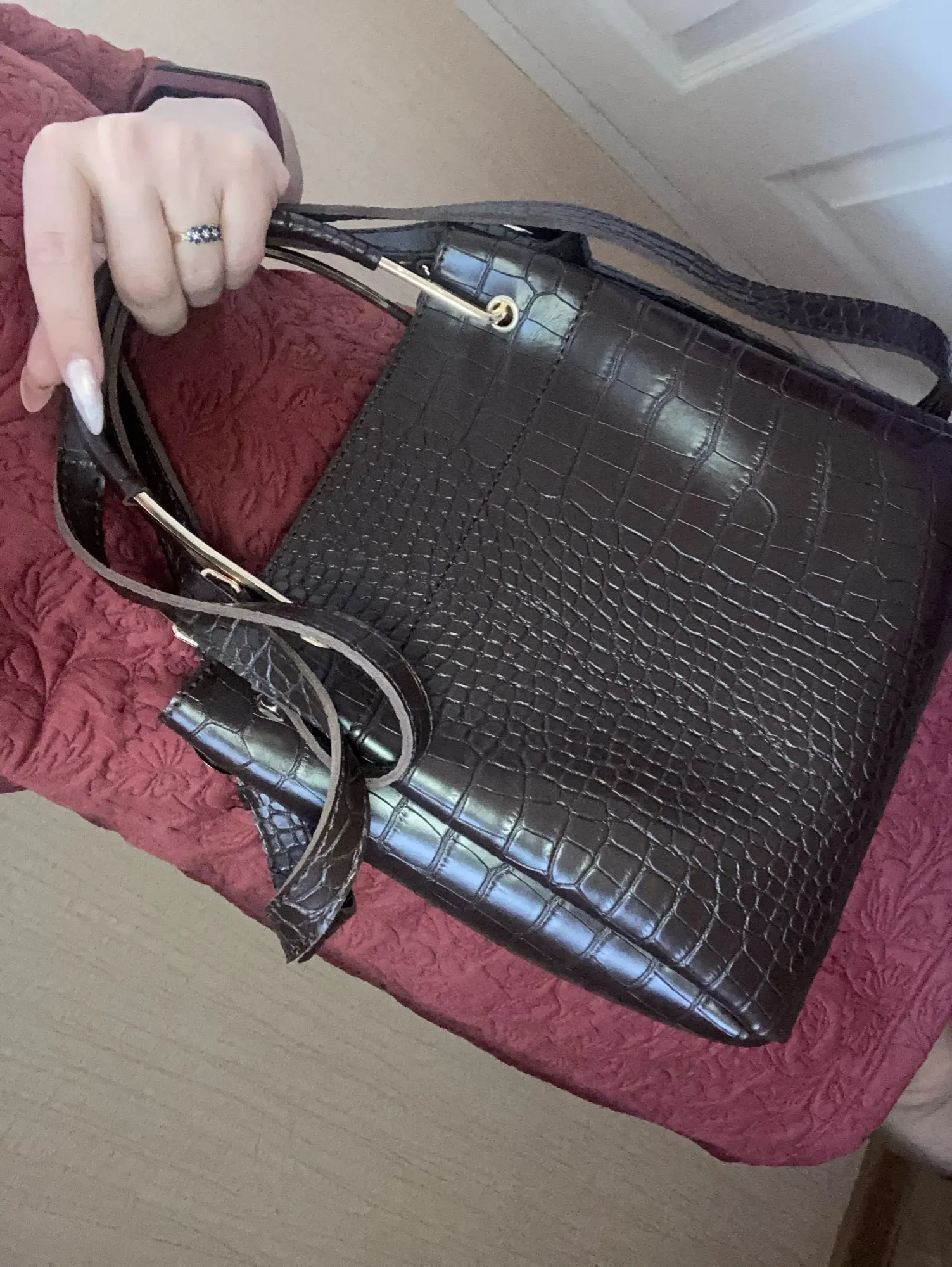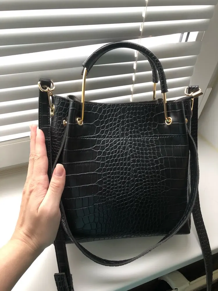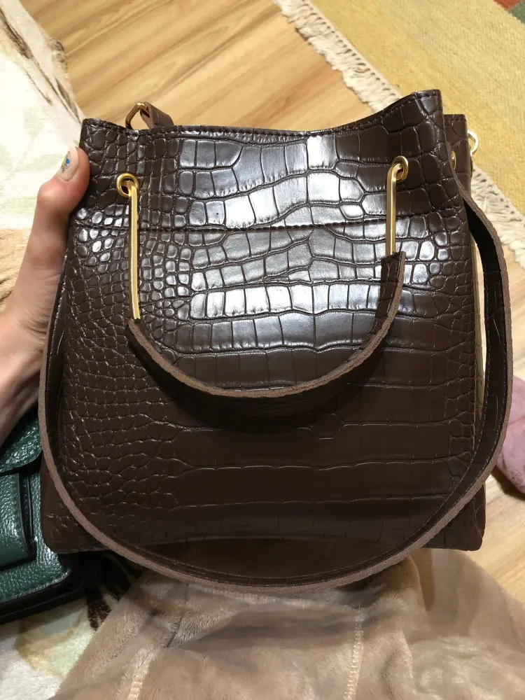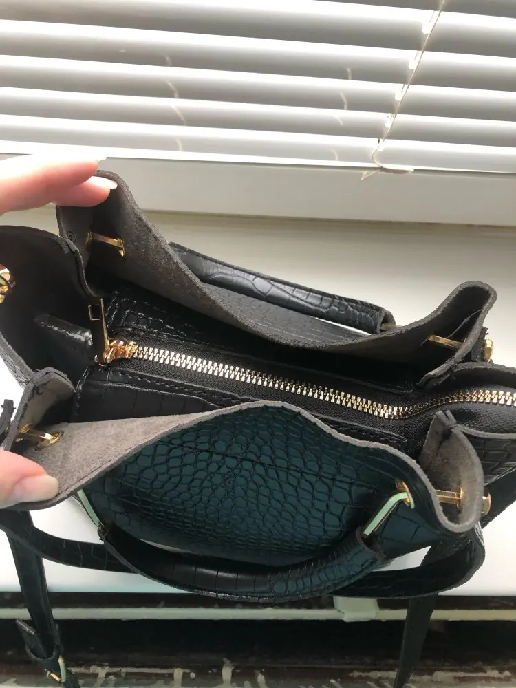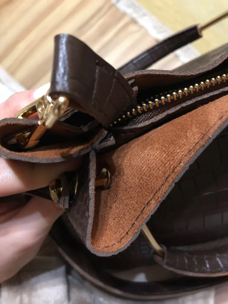 Хорошая сумка за такие деньги. Очень приятный на вид и ощупь материал. Фурнитура не супер. Рекомендую. Мне очень понравилвсь модель. Непривычная пока, но нравится.