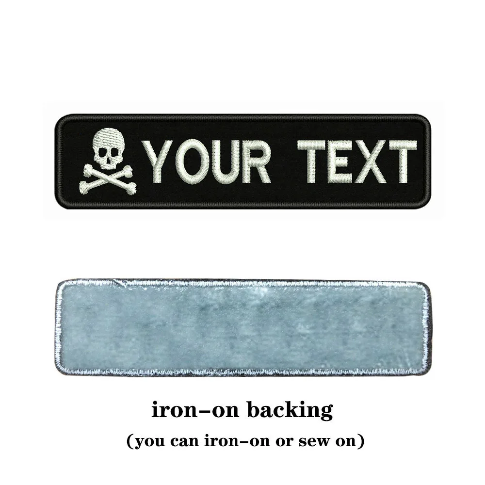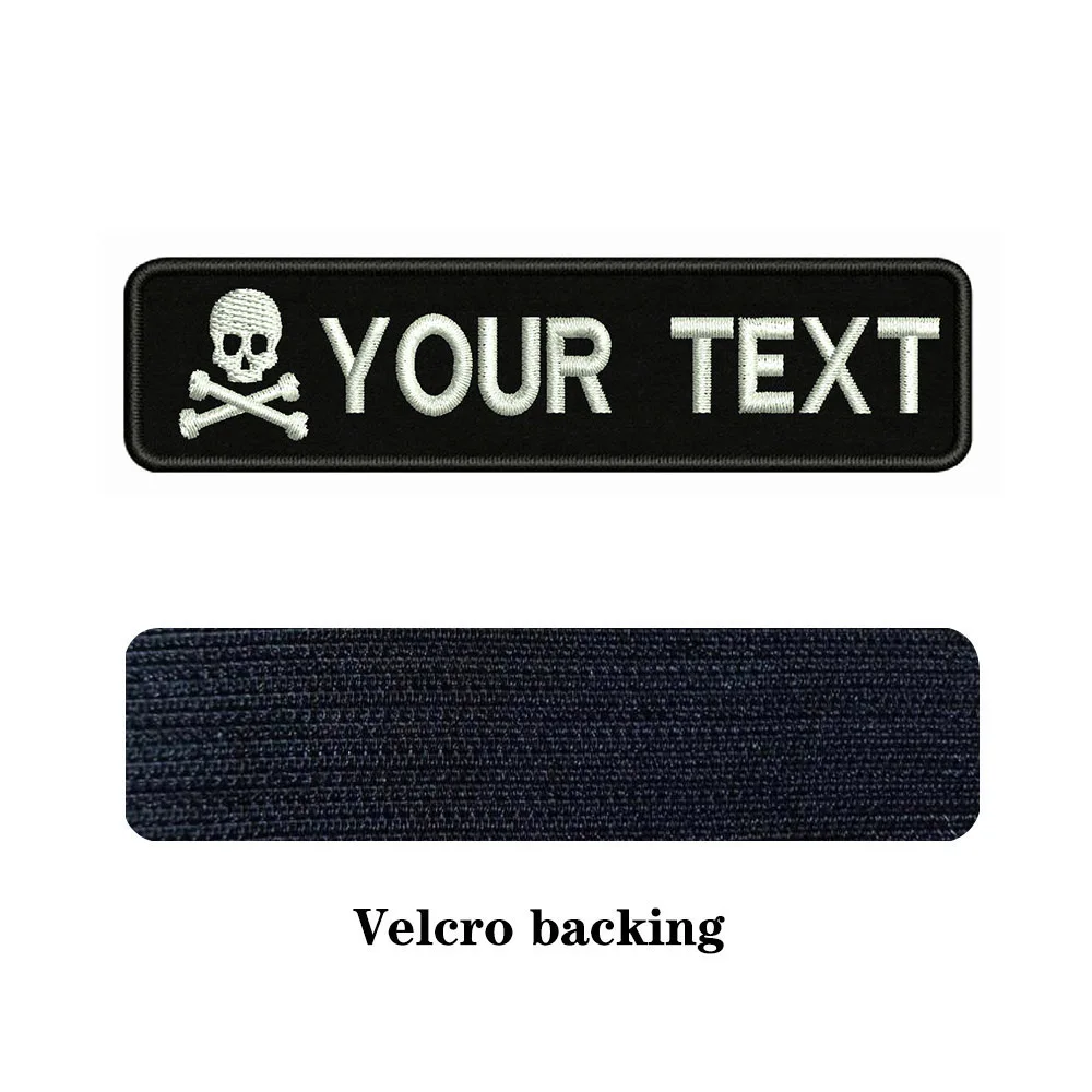 Логотип в виде черепа 10x2,5 см, вышивка, название под заказ, значок в виде строчек, нашивка на клеточку или шапка