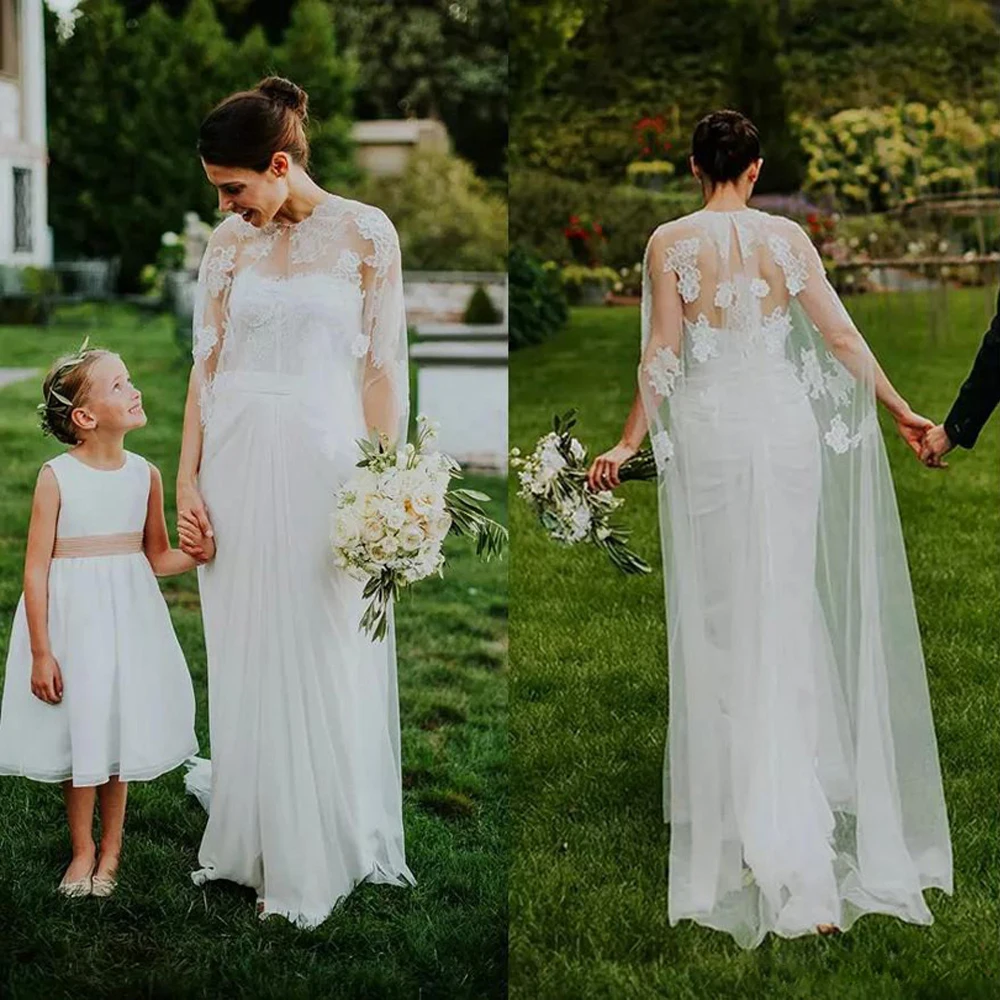 Свадебная накидка с аппликацией, Длинная накидка из тюля в пол, свадебные куртки белого цвета и цвета слоновой кости, свадебные аксессуары
