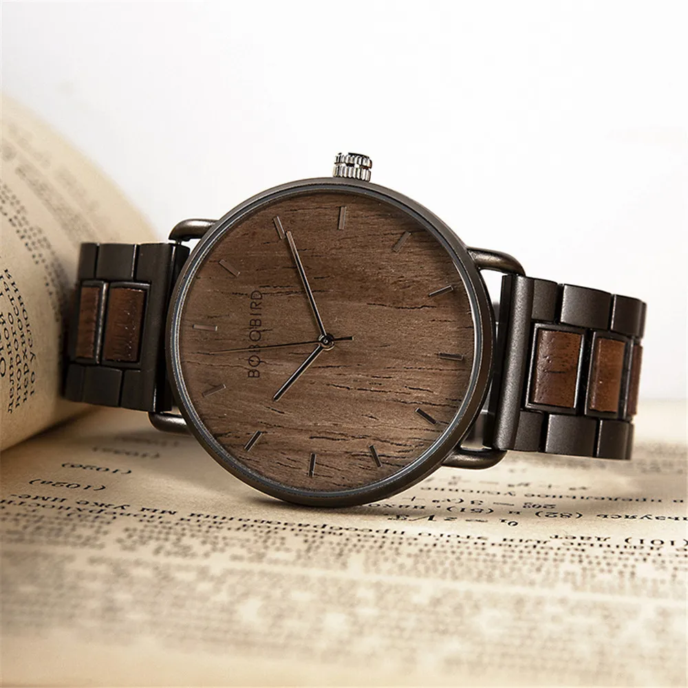 Мужские деловые часы BOBOBIRD, деревянные наручные часы из нержавеющей стали, лучший подарок, erkek kol saati, Прямая поставка