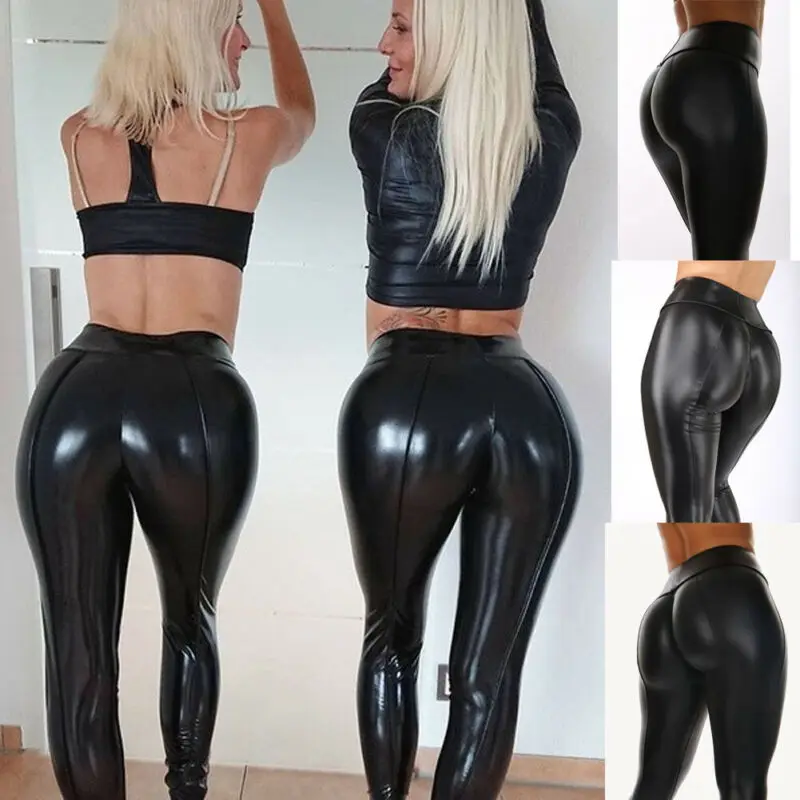 Кожаные леггинсы с высокой талией придают вашим ногам гладкий и сексуальный блеск-Попробуйте эти леггинсы, чтобы дополнить ваш сексуальный образ
