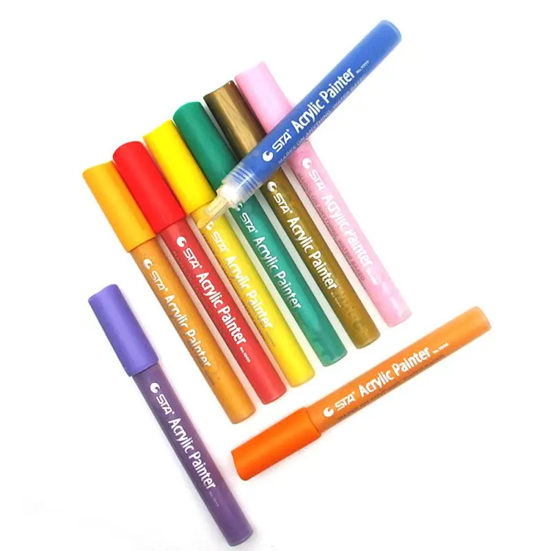 Это акриловый маркер с быстрой сушкой, водостойкостью, без запаха, мощностью и светильник стойкостью. Его ручка круглая и полная, и она очень удобна в использовании. Может использоваться как бирка. Он изготовлен из топливных чернил на водной основе. Безопасно, Экологически безопасно и Нетоксично.