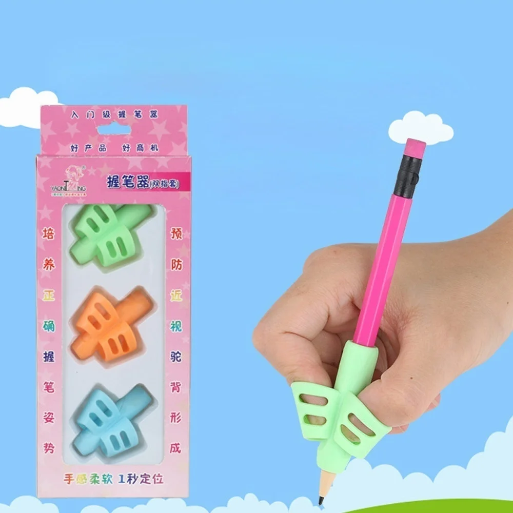 Детский силиконовый держатель для карандашей, 3 шт.компл., инструмент для коррекции осанки с двумя пальцами, принадлежности для письма для студентов и детей