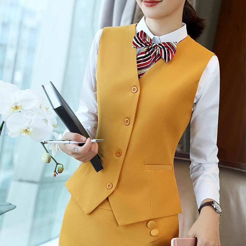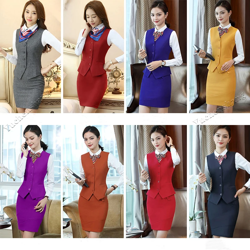 Женский элегантный офисный жилет, юбка, костюм, офисная униформа, дизайнерская женская куртка без рукавов, блейзер и юбка, размеры