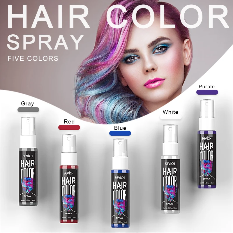 1. Цвет: 5 цветов Цвет s, красный, синий, фиолетовый, белый, серый 2. Вес нетто: 30 мл. 3.The one off spray краска для волос с уникальным аппликатором, который позволяет просто расчесывать цвет, где вы хотите, чтобы он появился! 4. Краситель color free без перчаток-аккуратно окрасьте цвет после распыления. 5. Моется и легко моется. 6. Временная спрей-краска для волос отлично подходит для всех, кто любит проявлять свою индивидуальность без затрат на дорогие салоны.
