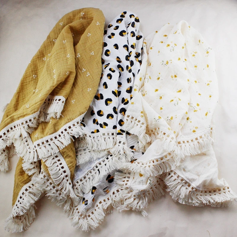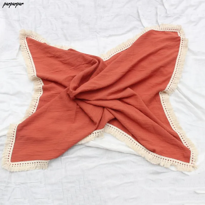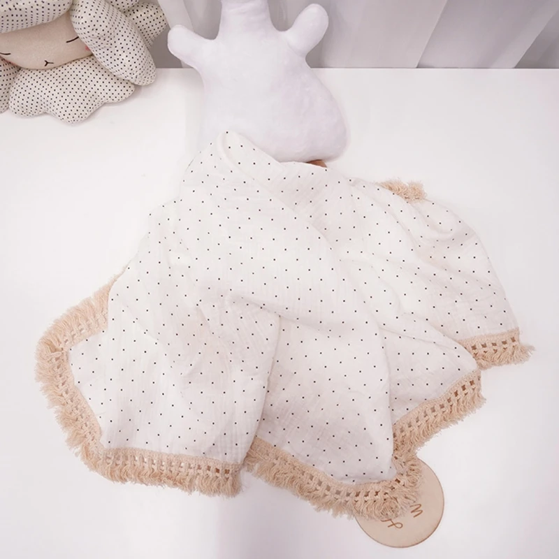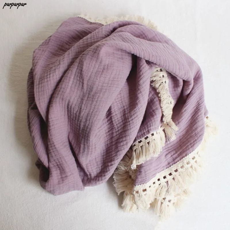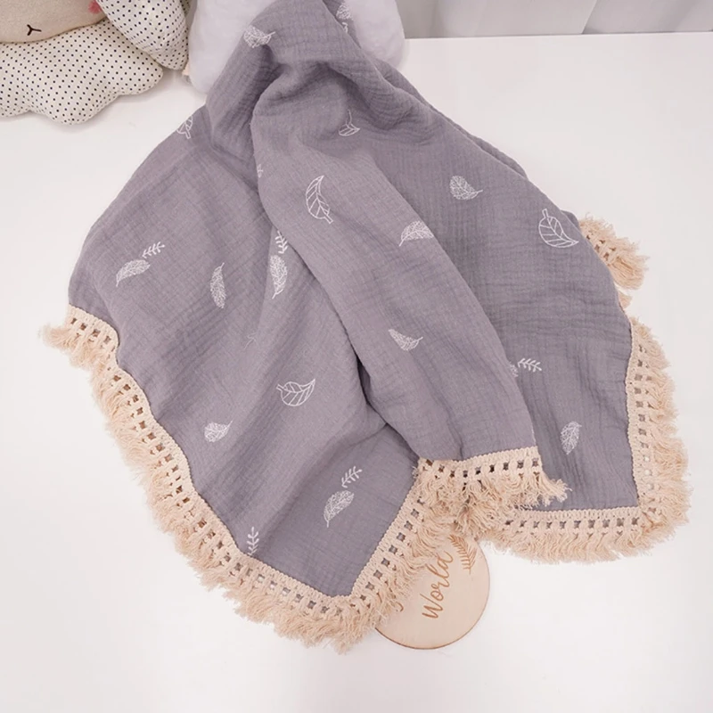 Муслиновые пеленки с бахромой, хлопковое детское одеяло с кисточкой...