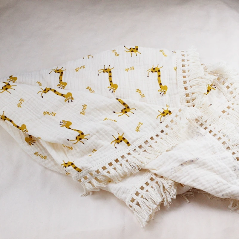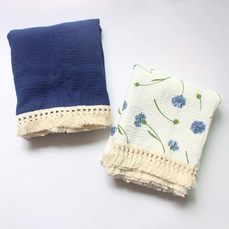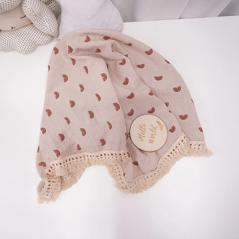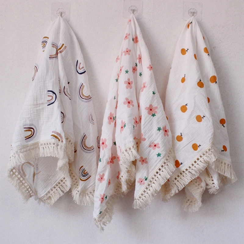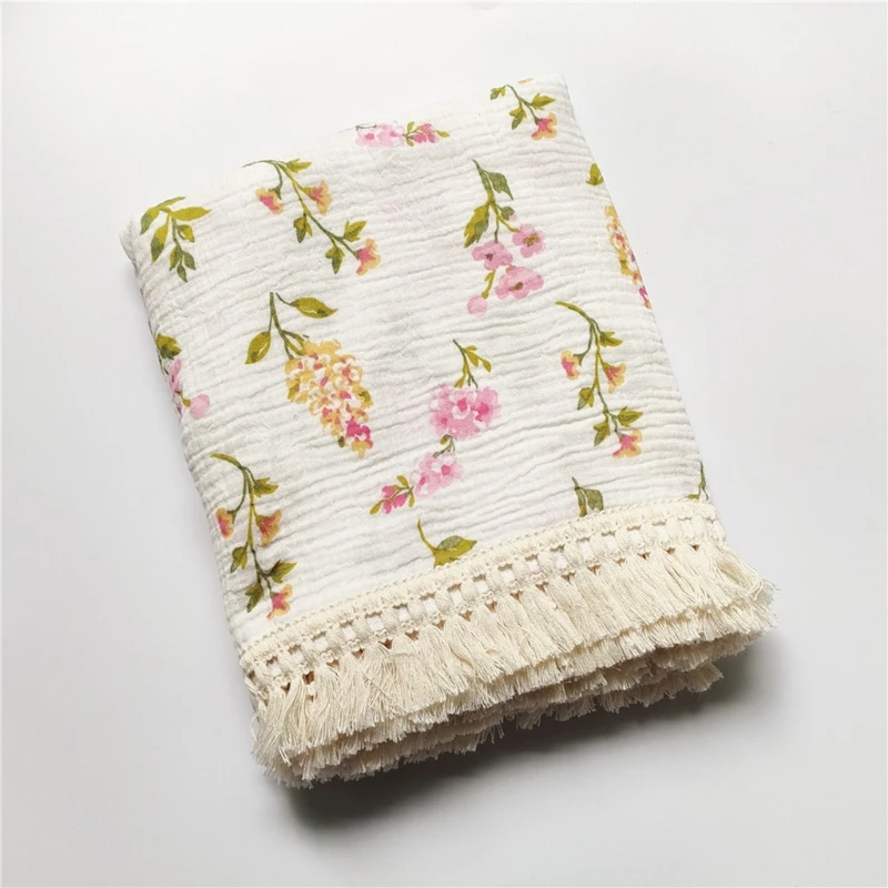 Муслиновые пеленки с бахромой, хлопковое детское одеяло с кисточкой...