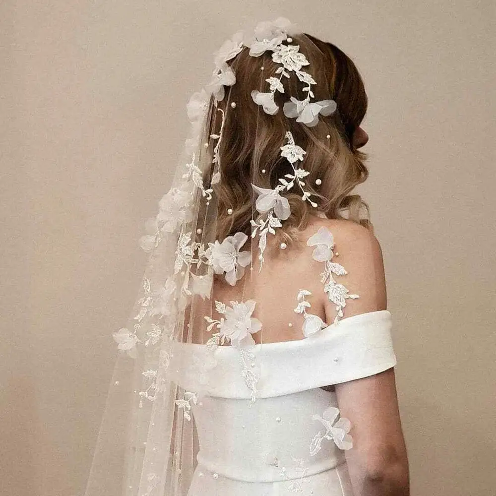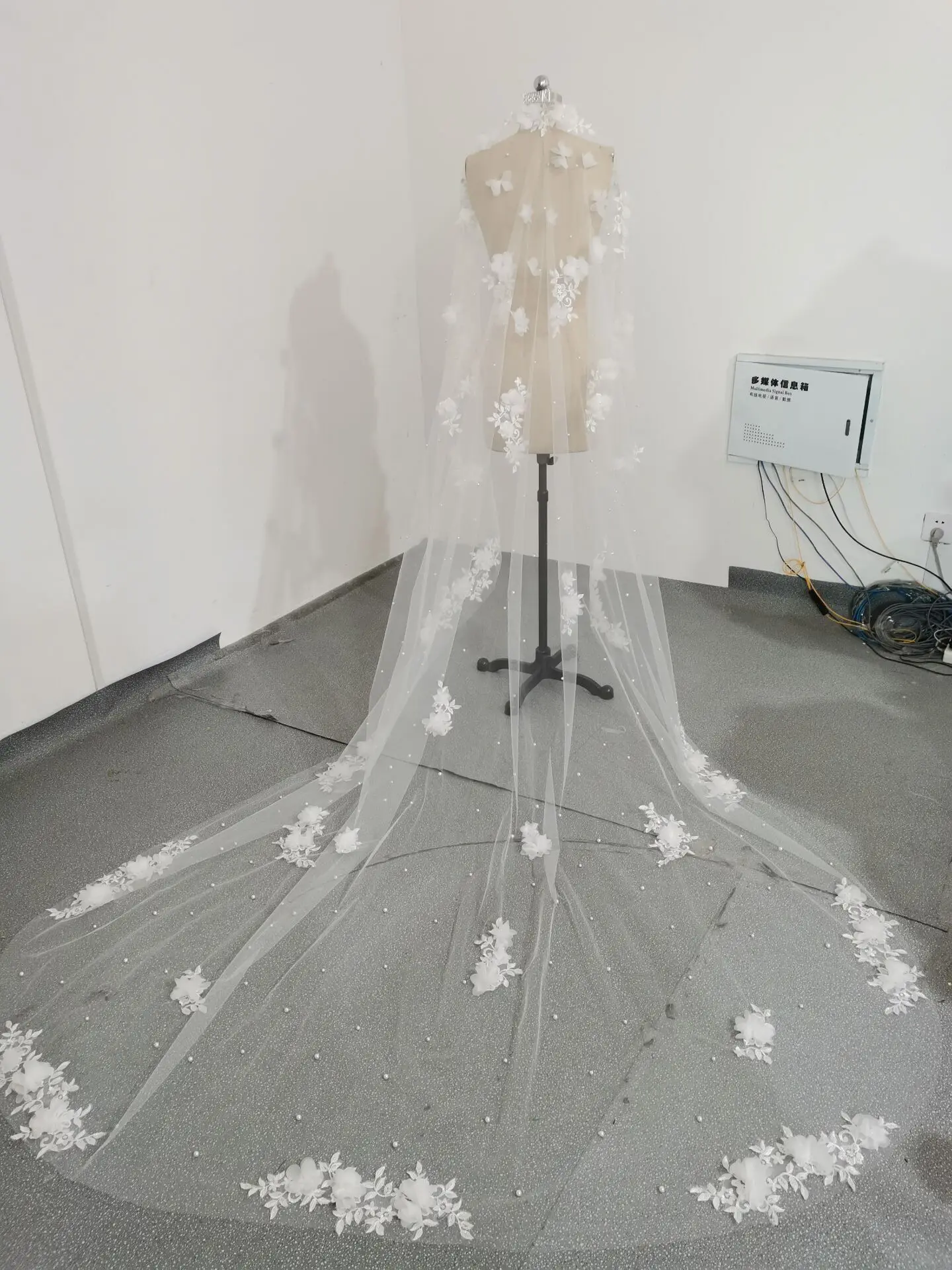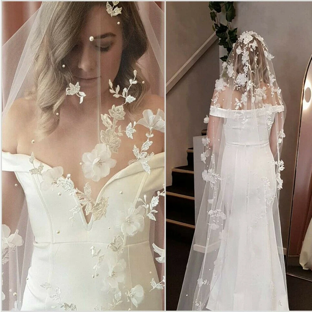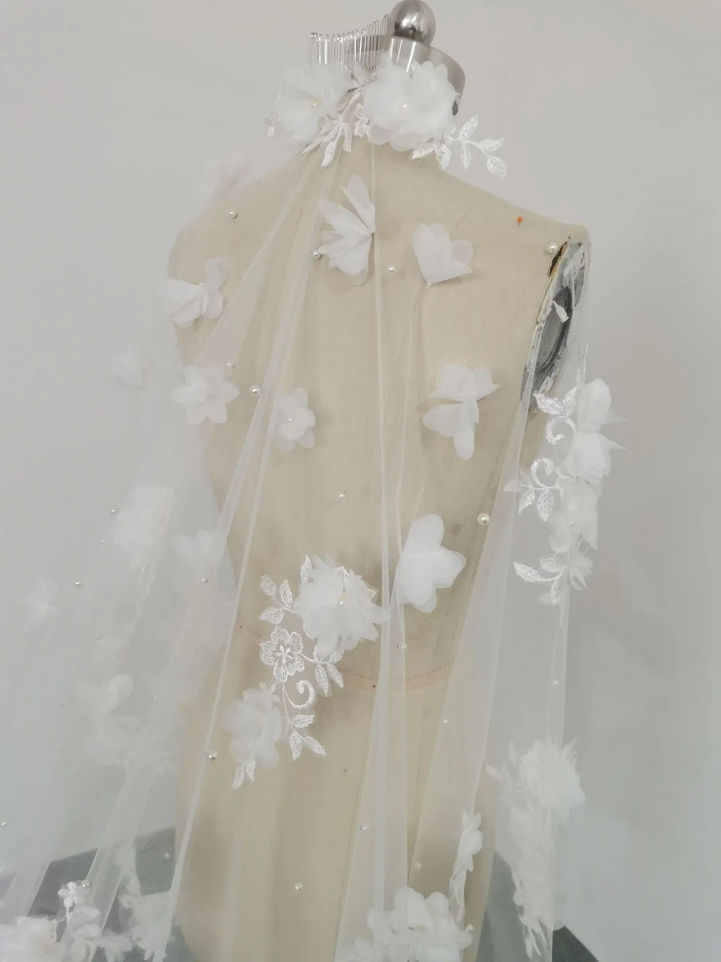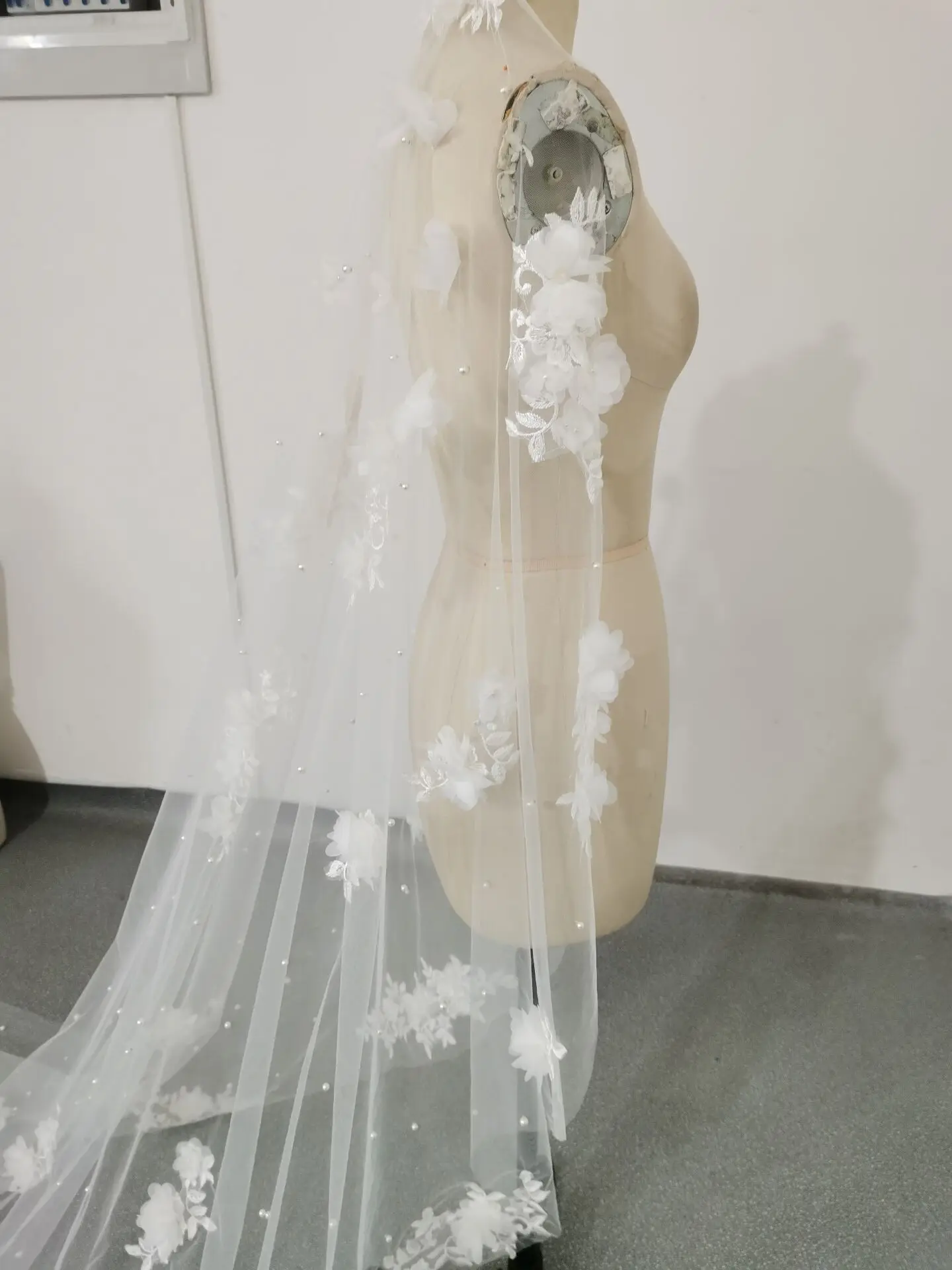 Свадебная фата с аппликацией, элегантная Фата невесты длиной до щиколотки с 3D цветами и жемчугом, вуаль свадебные аксессуары невесты
