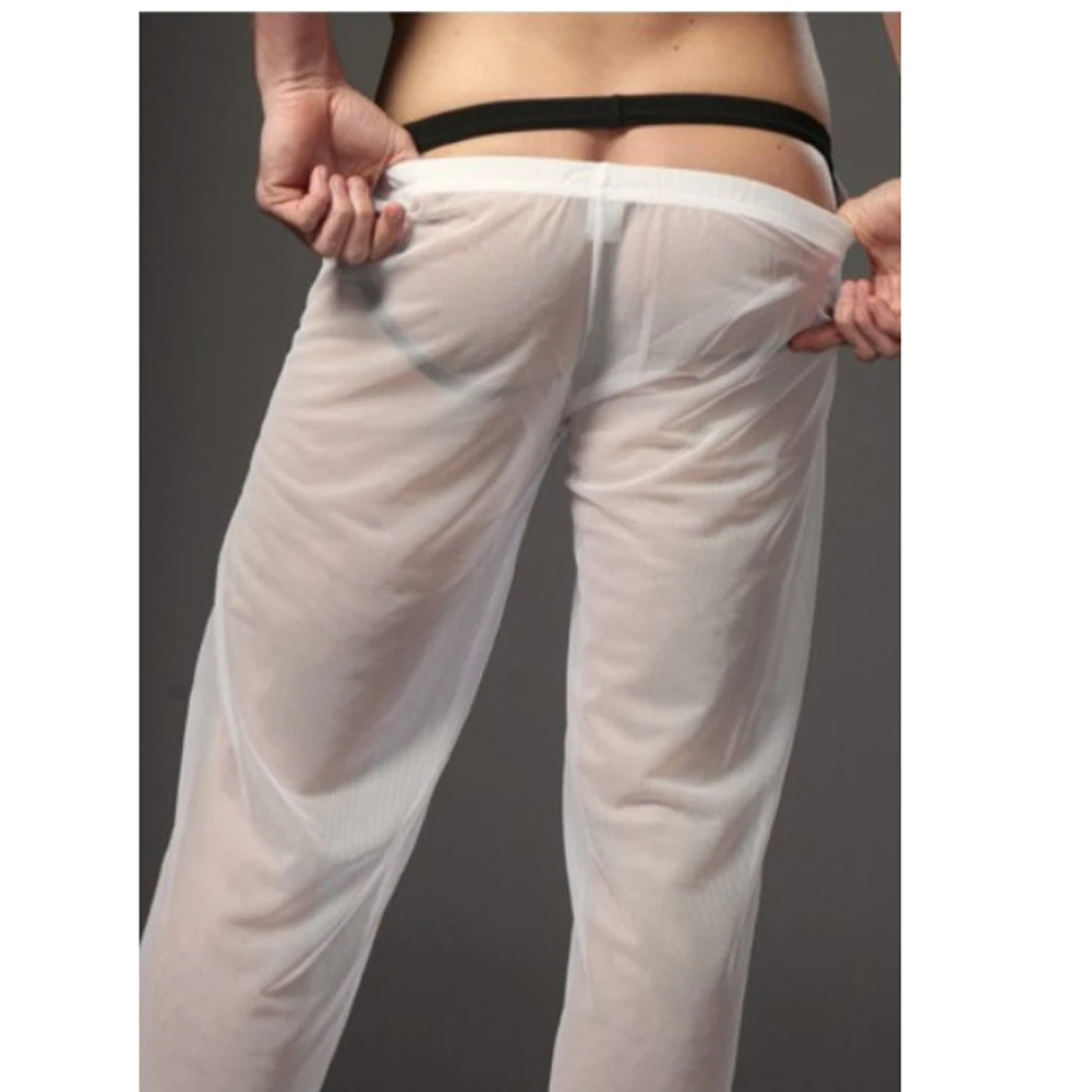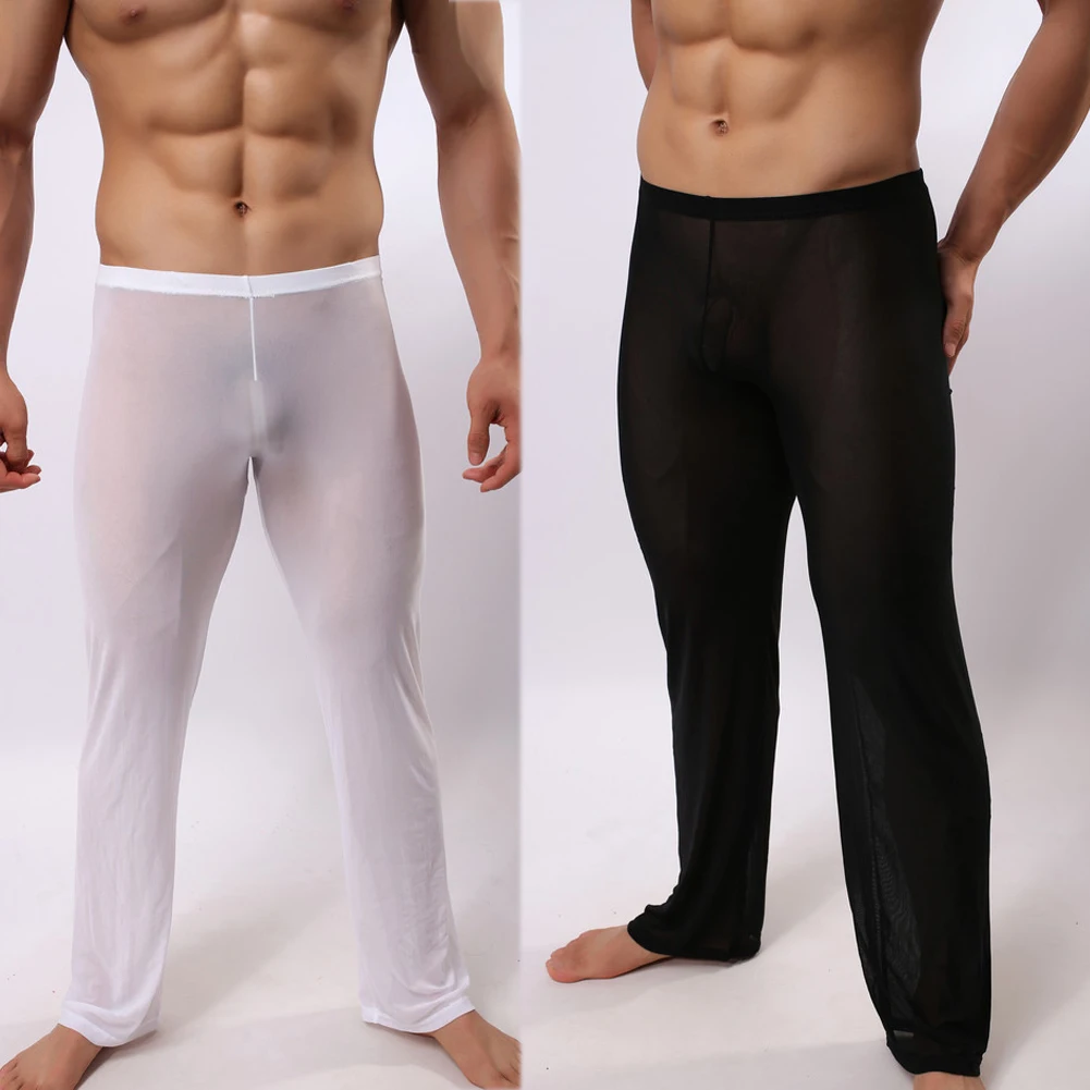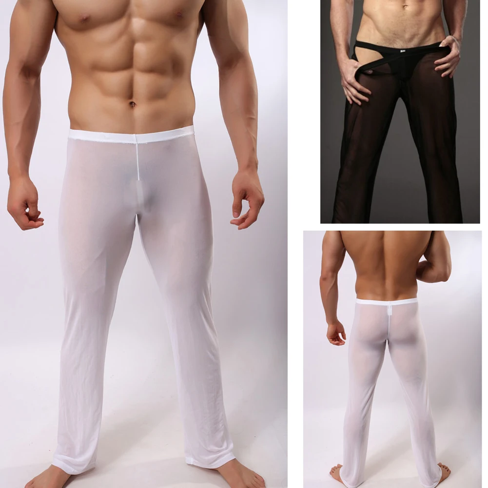 Мужские пижамные трусы, летнее сексуальное нижнее белье, длинные штаны из термосетки, Прозрачное нижнее белье, брюки для сна, 2020
