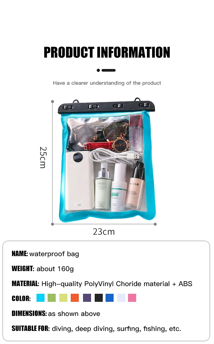 Водонепроницаемая сумка для плавания многофункциональная прозрачная пляжная сумка для подводного плавания для дайвинга, серфинга, рыбалки, мобильный телефон