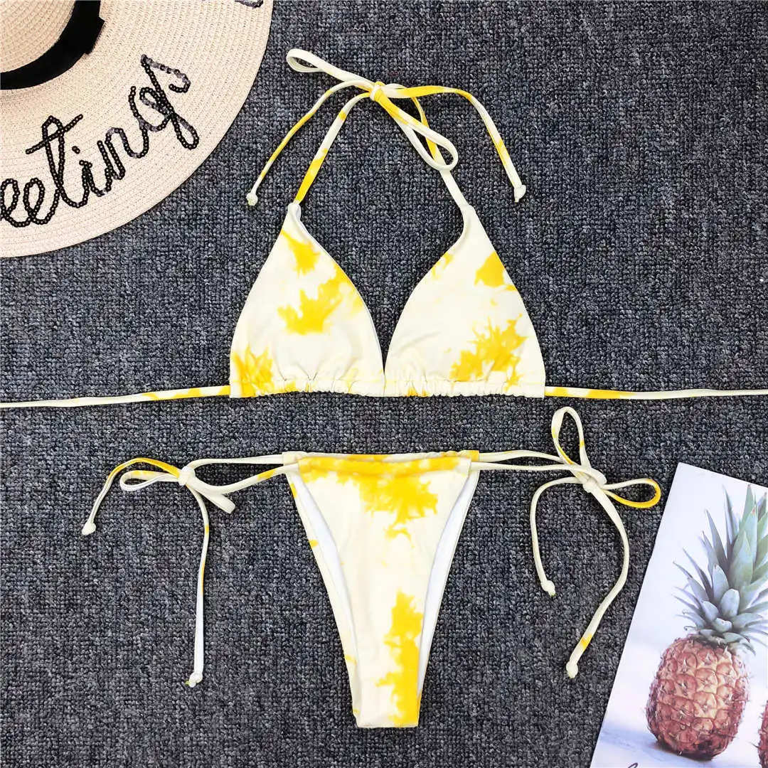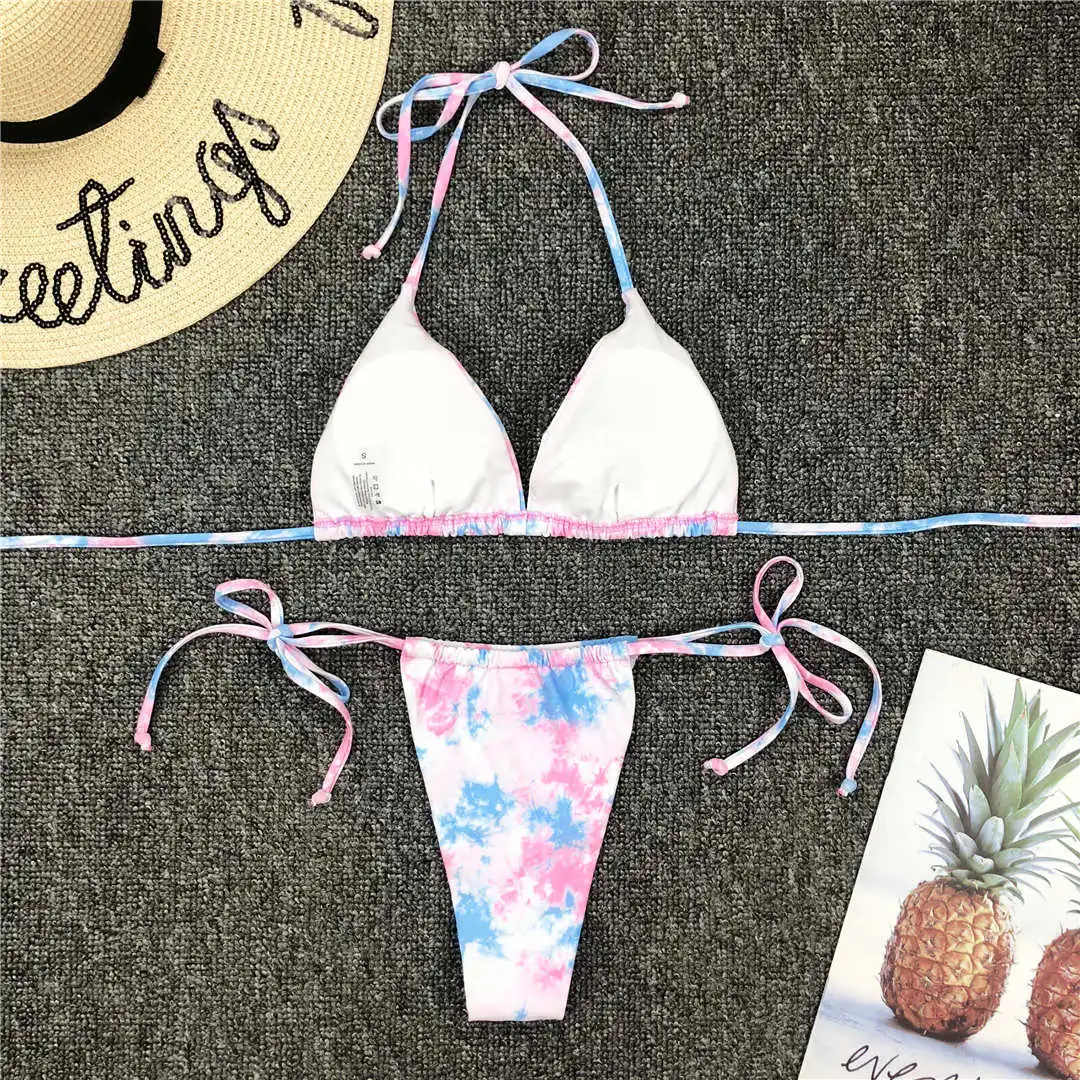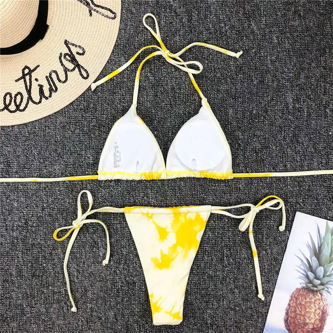 Сексуальные красочные Холтер Мини стринги бикини женский купальник ...