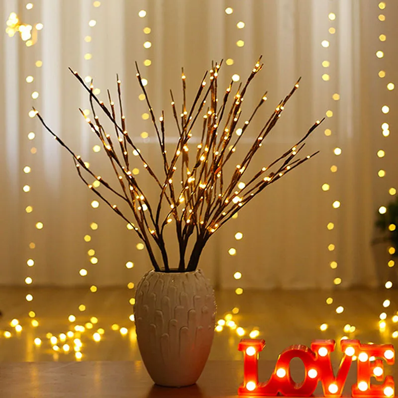 20 лампочек, светодиодные светильники для ветвей из ивы, на батарей...