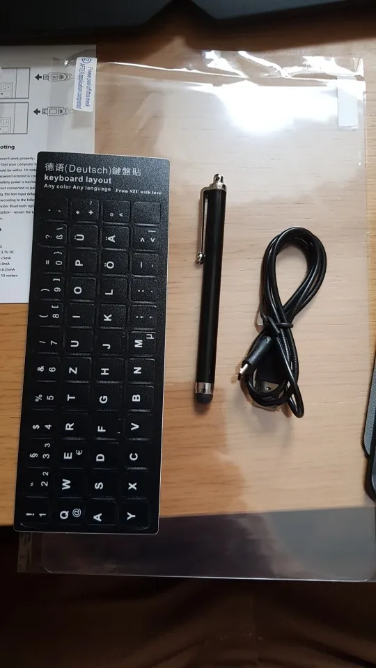 Заказ пришёл немного позже указанного времени, но все в идеале!... Продавец очень отзывчивый и общительный. Клавиатура с русской раскладкой, в комплекте стилус, лучше оригинального и usb провод. Всё запечатано было на высшем уровне.