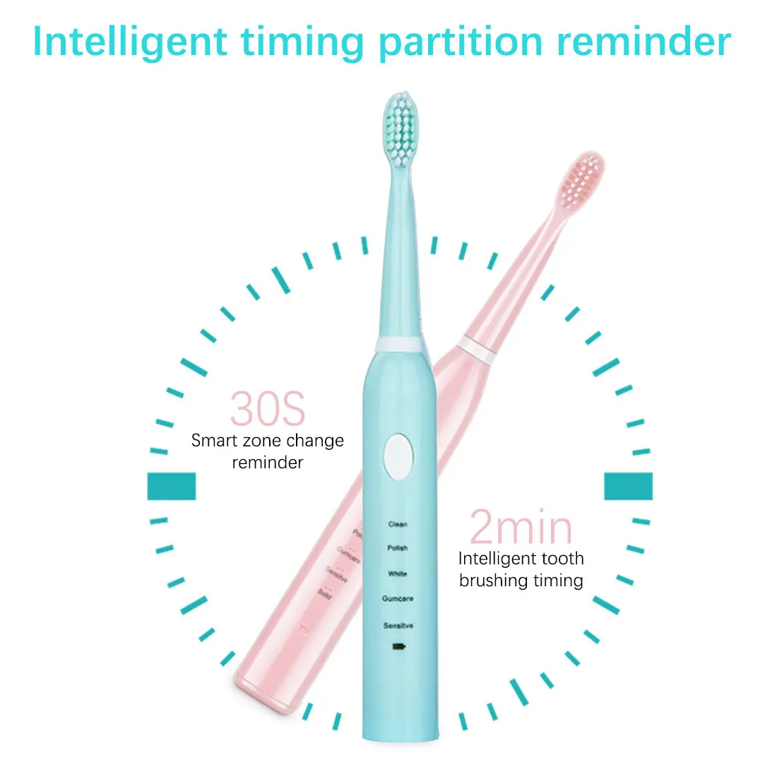 Ультразвуковая электрическая Зубная щётка USB Перезаряжаемые зубные щетки моющиеся электронный отбеливающая зубная щетка для взрослых с таймером насадка для зубных щеток