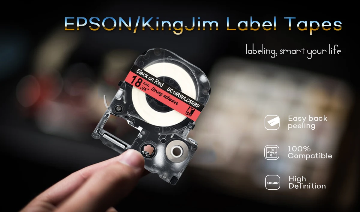 Лента для этикеток Epson, 18 мм, SC18RW LC5RBP, лента для машинки для печати этикеток KingJim, ручной принтер для этикеток LW400Epson