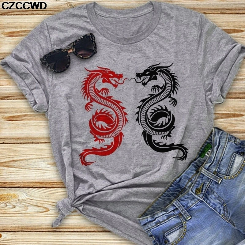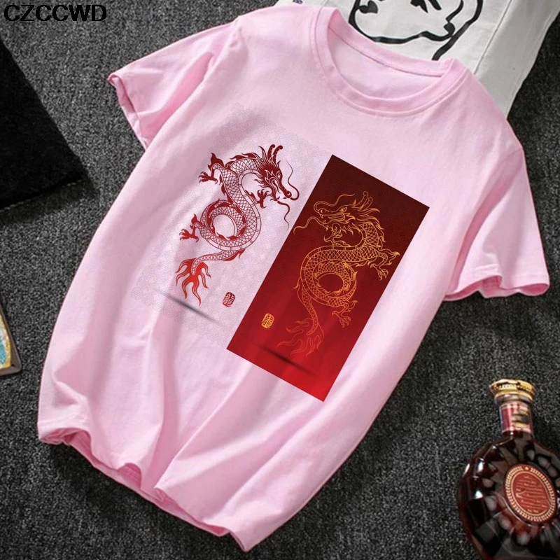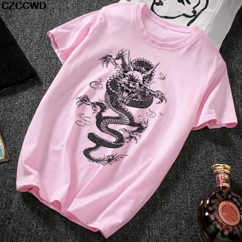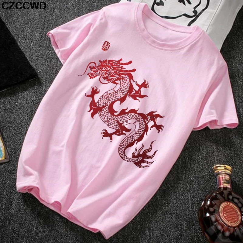 Модная розовая футболка с принтом китайских иероглифов дракона, Женская Повседневная футболка большого размера, женские уличные топы, летняя футболка