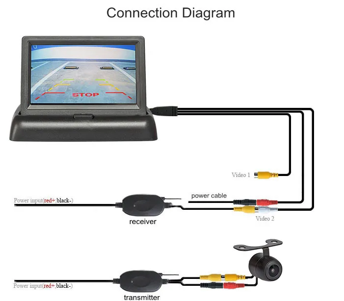 Устраняет необходимость запуска кабеля длиной транспортного средства, просто подключите передатчик в конце камеры и приемник в конце монитора.