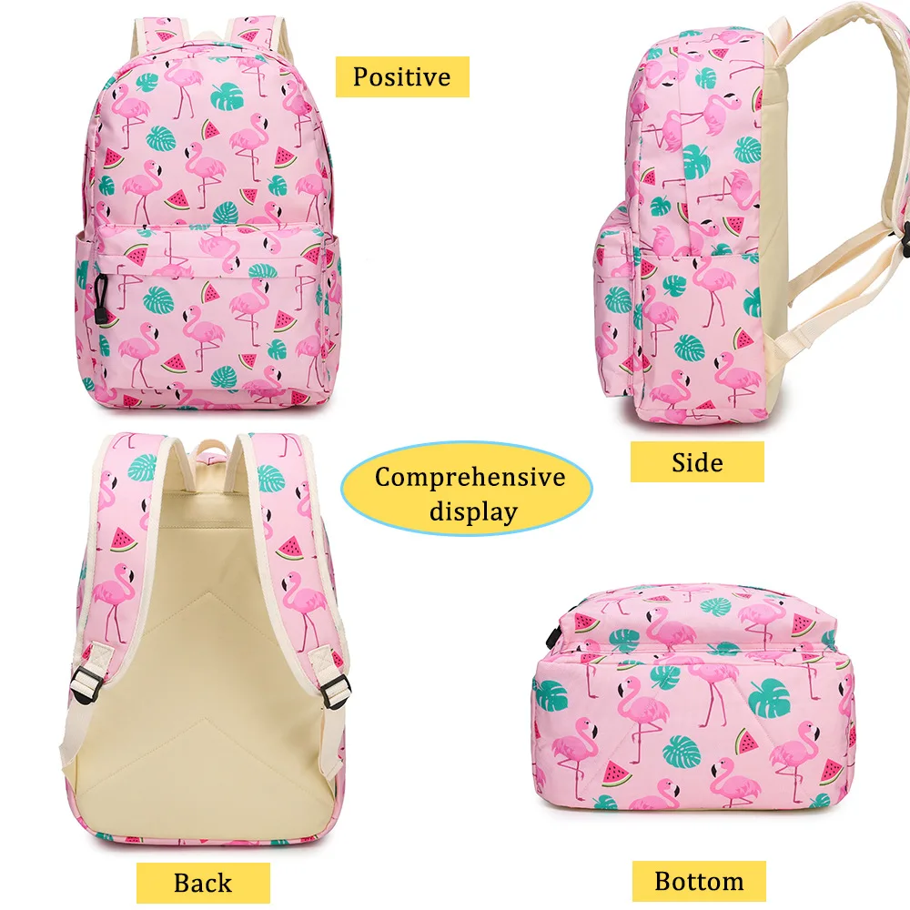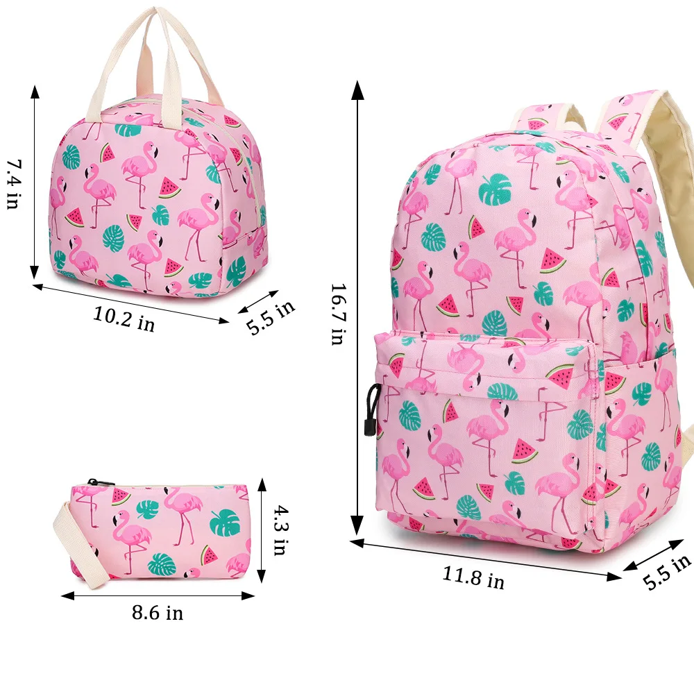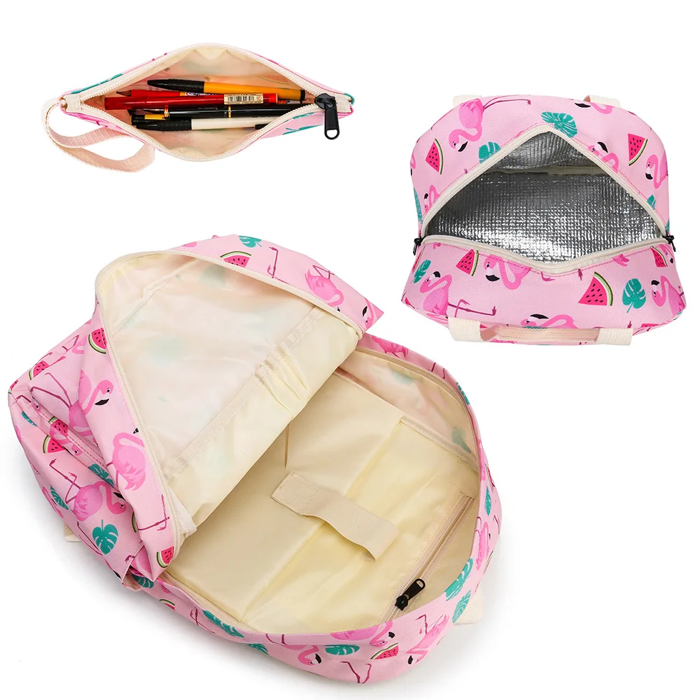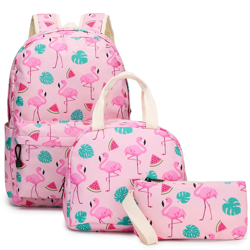 Новинка 2020, комплект розовых фламинго из 3 предметов, школьные сумки для начальной и средней школы, детские сумки для еды, Пеналы, Дамский рюкзак, кошелек