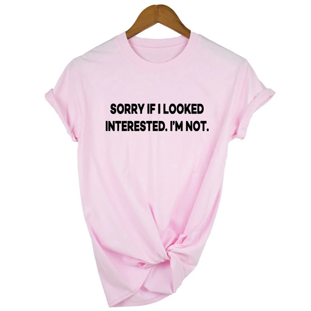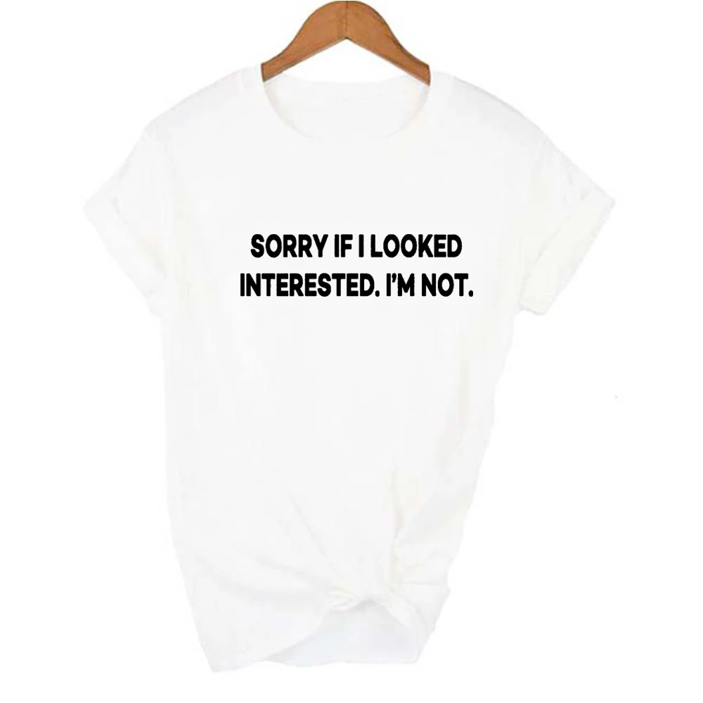 Извините, если я выгляжу заинтересованной, я не с буквенным принтом, женские Забавные футболки Tumblr, одежда, гранж, модные топы, летние уличные футболки