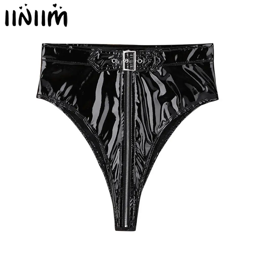 Женские сексуальные трусики с высоким вырезом на молнии с ремнем, трусы, нижнее белье, трусы, женское латекс, бикини, Клубная одежда, трусики