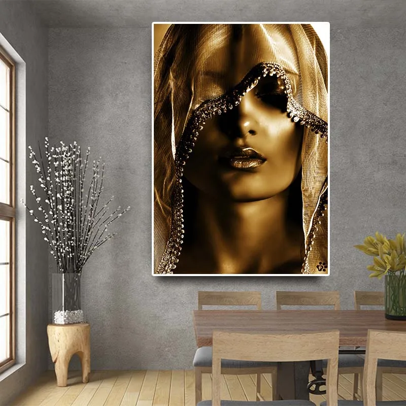 Картины на холсте с изображением женщины, золотого цвета, настенные...