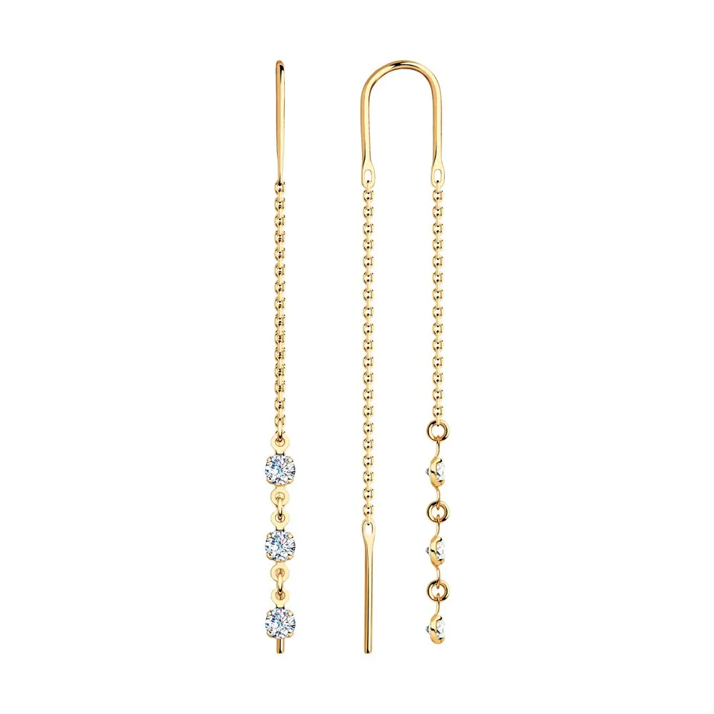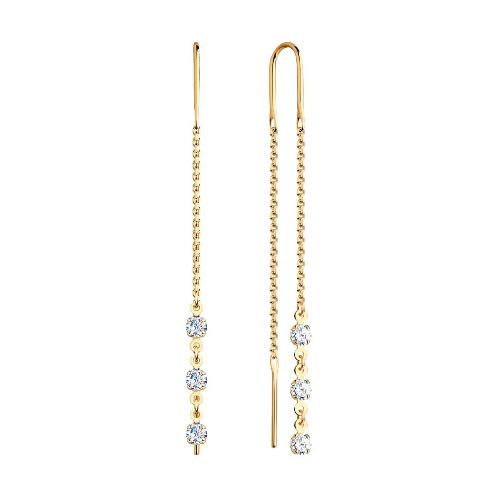 Серьги-цепочки SOKOLOV из золота с тремя фианитами, Золото, 585, Женские, Серьги 2022 тренд, Оригинальная продукция