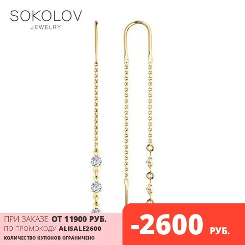 Серьги-цепочки SOKOLOV из золота с фианитами, Золото, 585, Женские,...