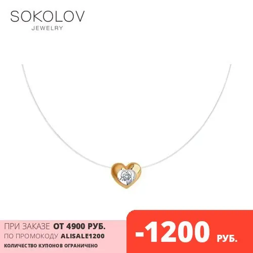 Колье на леске SOKOLOV из золота с фианитом, Золото, 585, Оригинальная продукция