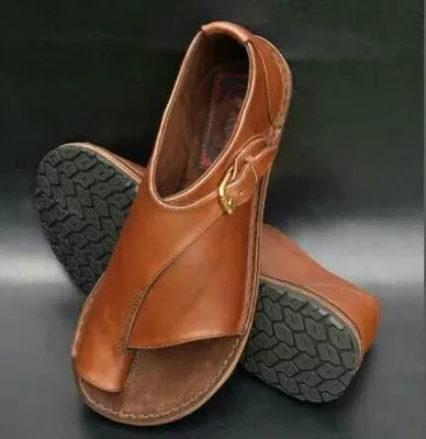 2020 женские кожаные сандалии; Удобная обувь на плоской подошве; Повседневные мягкие сандалии с большим носком в стиле ретро; Сандалии