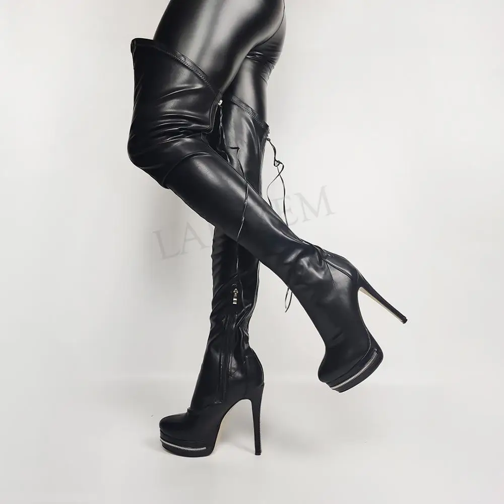 BERZIMERженские сапоги до промежности из эластичной искусственной кожи с молнией сзади на высоком каблуке; Ботфорты; Zapatos; Большие размеры 43, 45, 52