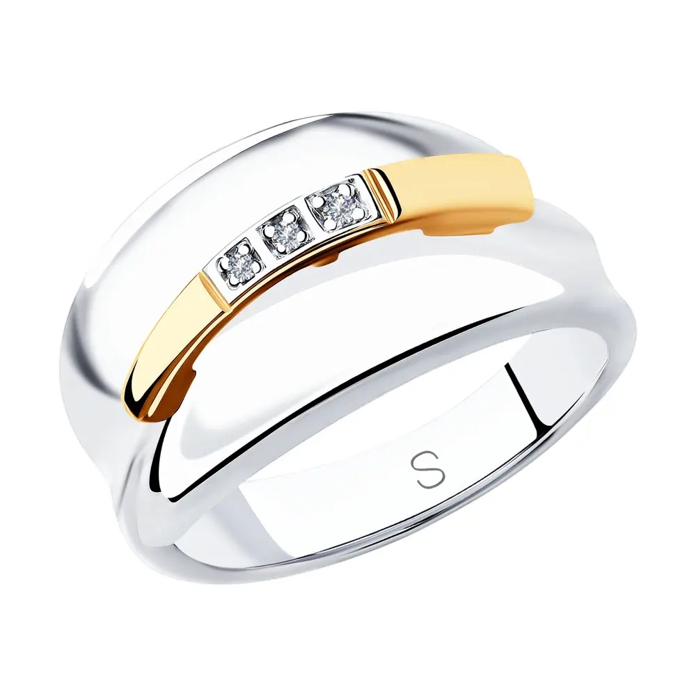 Кольцо SOKOLOV из золота и серебра с бриллиантамиКольцо из золота и серебра с бриллиантами – классика в оригинальном прочтении. Основа дизайна – игра бликов металла, отполированные поверхности, пластичные формы. Украшение дополнит сдержанный офисный образ, разнообразит базовый лук или вечернее платье. Это must-have вашей ювелирной коллекции по выгодной цене.