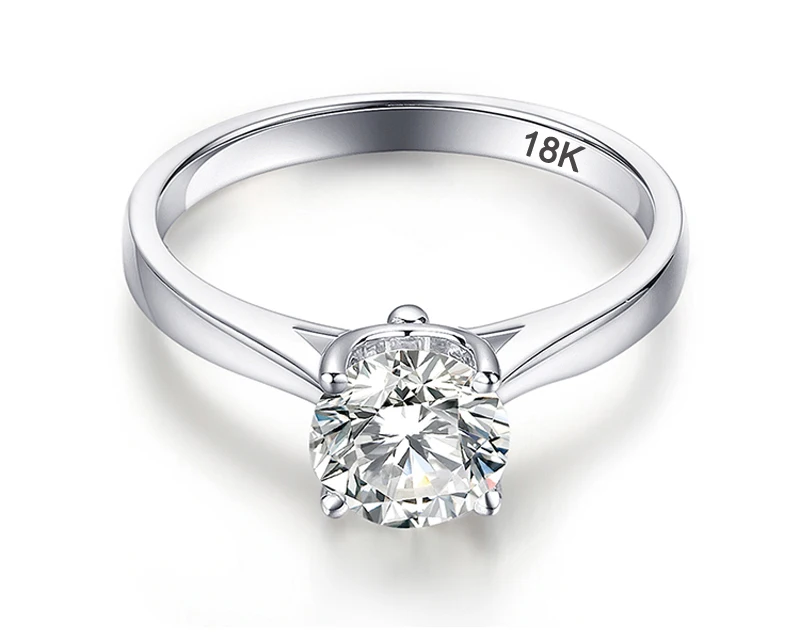 Женское кольцо из белого золота 18 К, с фианитом 8 мм, 2 карата