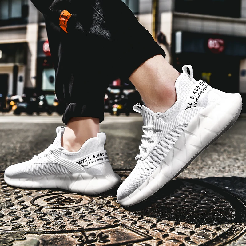 Кроссовки мужские спортивные, дышащие, белые, черные