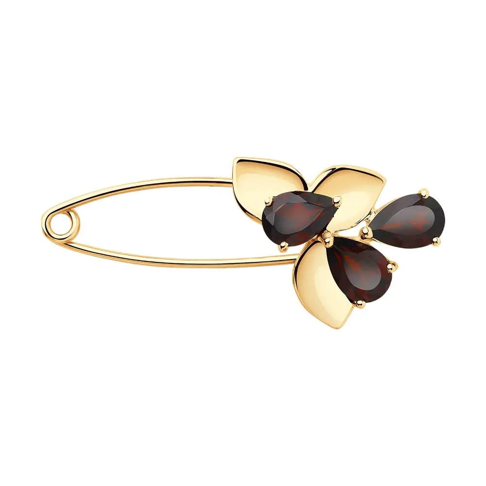 Брошь SOKOLOV из золота с гранатами, Золото, 585, Оригинальная продукция