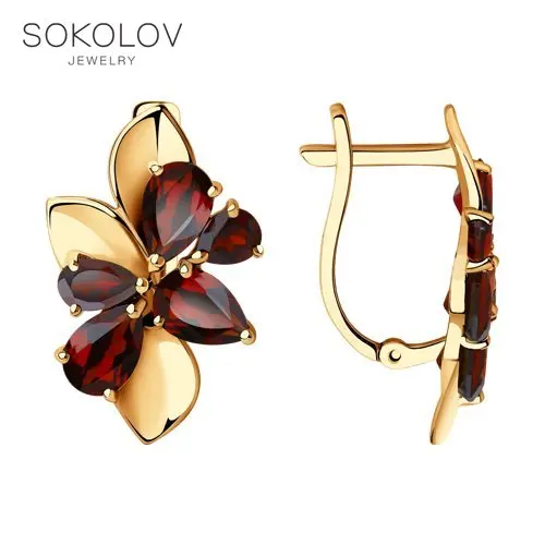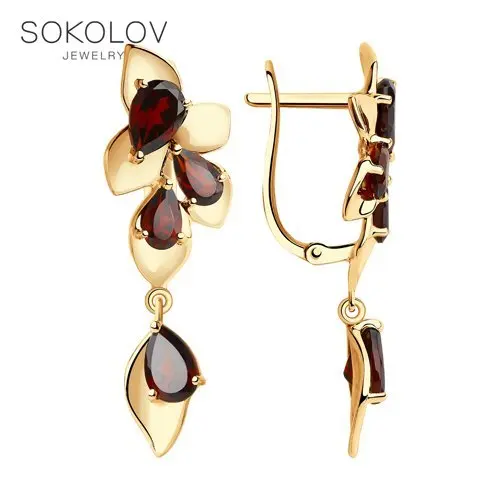 Серьги SOKOLOV из золота с гранатами, Золото, 585, Женские, Серьги 2022 тренд, Оригинальная продукция