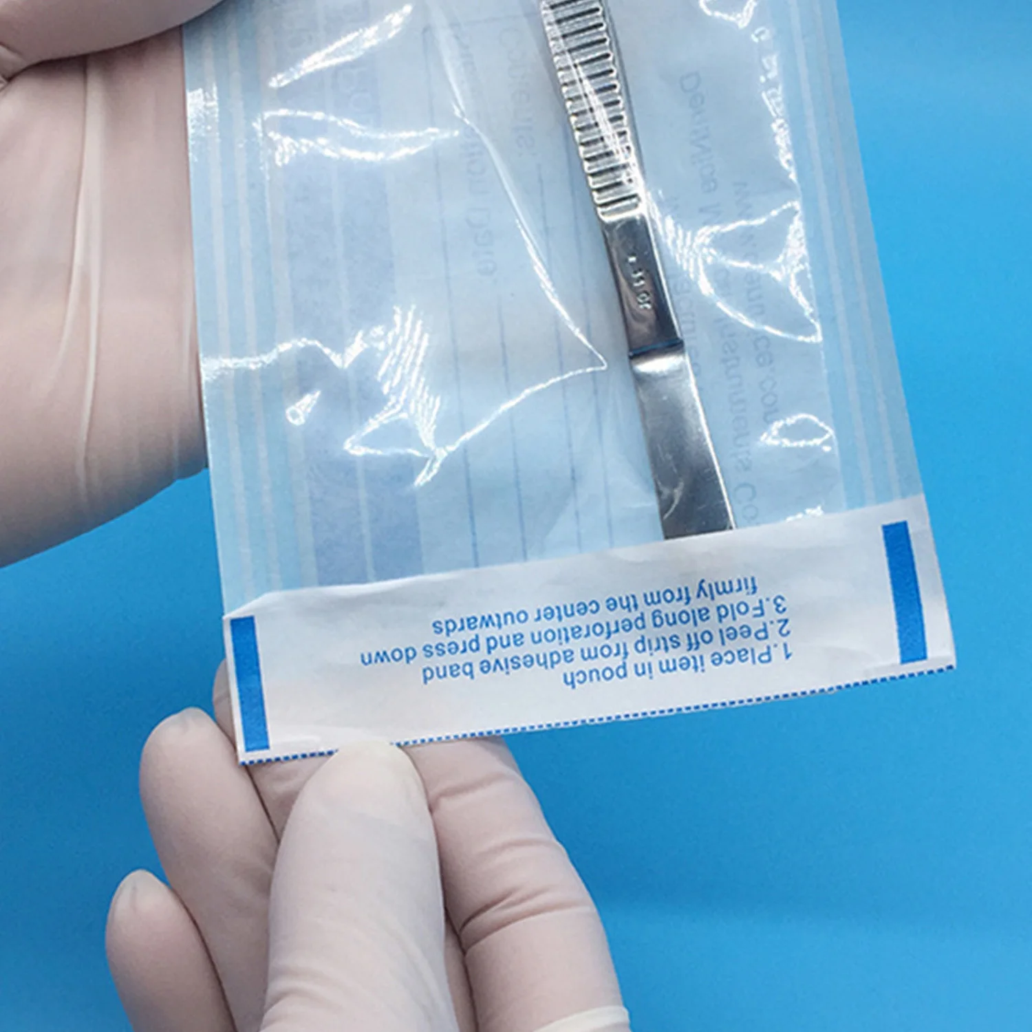 Самоклеящаяся конструкция для хорошей герметизации, просто положите вещи, снимите клей, чтобы приклеить его, и положите пакет в стерилизатор.