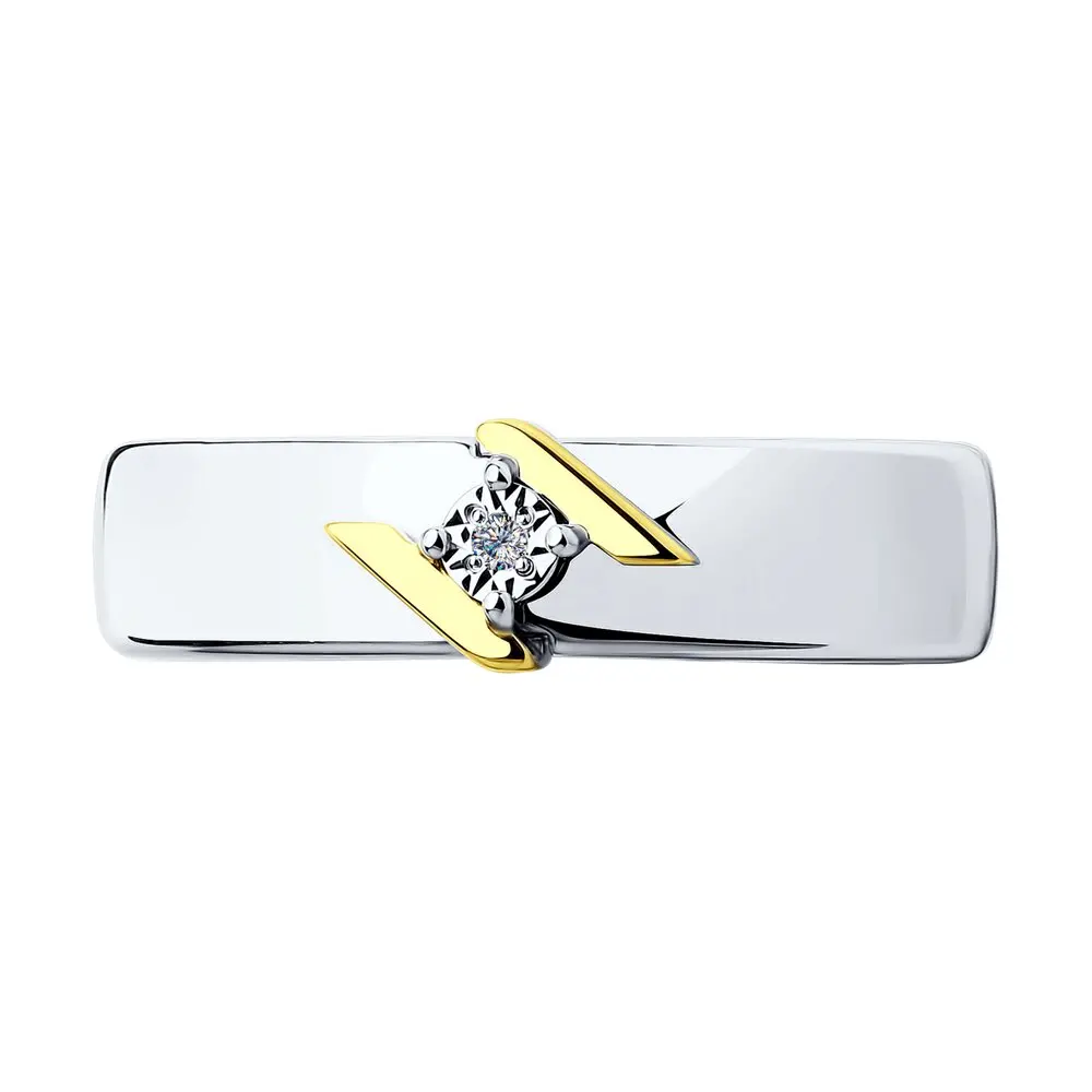 Кольцо SOKOLOV из золочёного серебра с бриллиантомЭто эффектное серебряное кольцо выберет поклонница трендовой и современной классики. Особенности модели – комфортная широкая шинка и декоративные накладки из золочёного серебра, которые акцентируют рельефный каст с сияющим бриллиантом. Сдержанный, но элегантный дизайн кольца позволяет носить его каждый день, дополняя образ сольным блестящим акцентом или сочетая кольцо с другими украшениями.