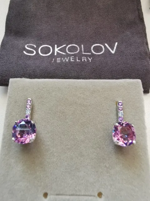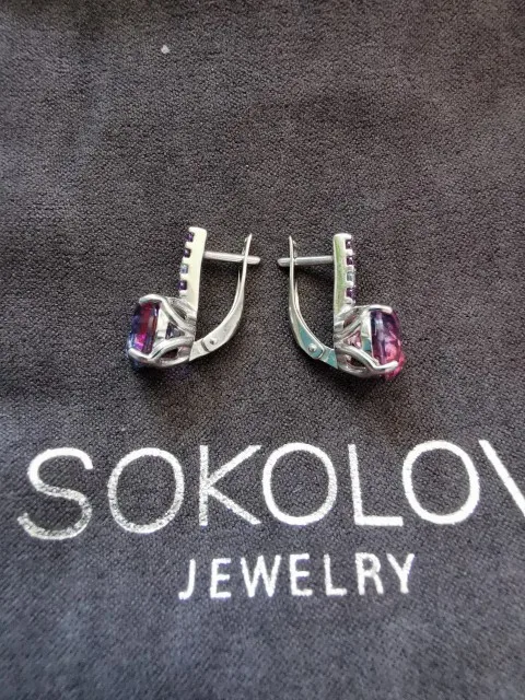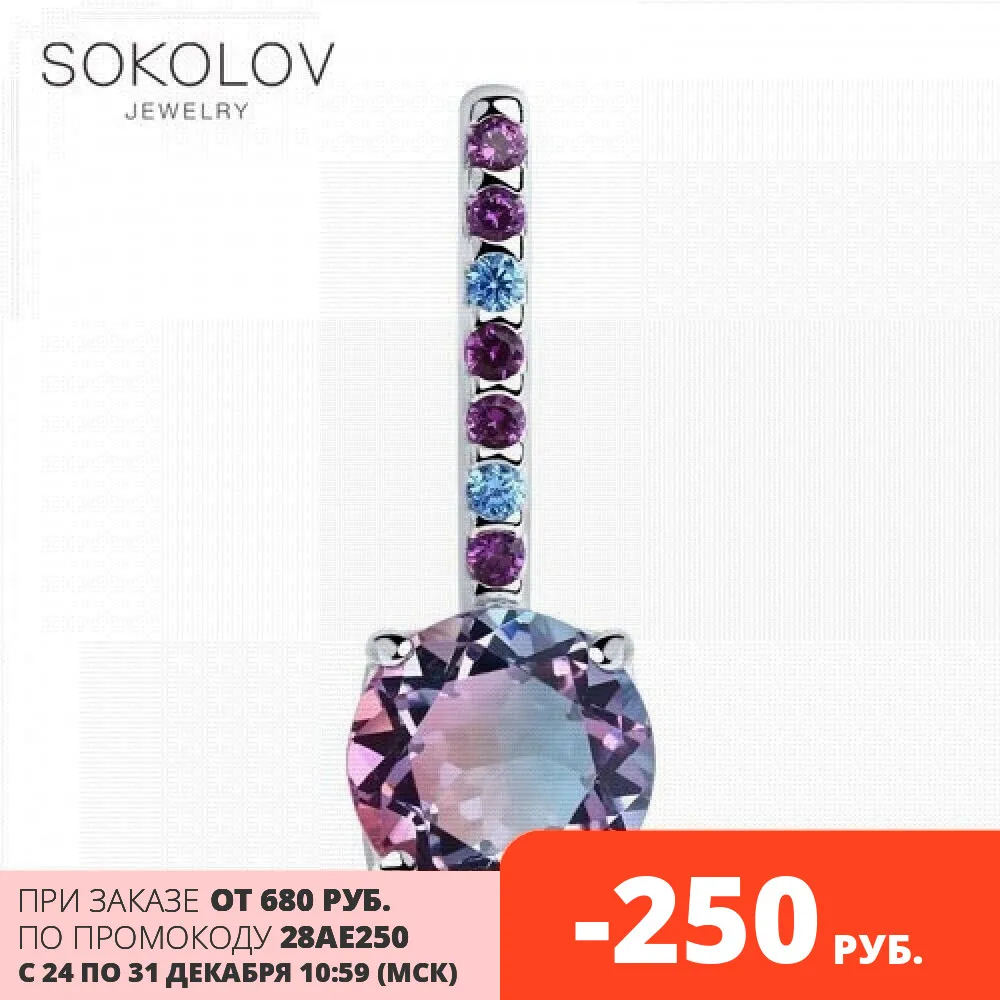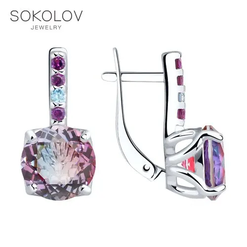 Серьги SOKOLOV из серебра с ситаллами и голубыми и сиреневыми фианитами, Серебро, 925, Женские, Серьги 2022 тренд
