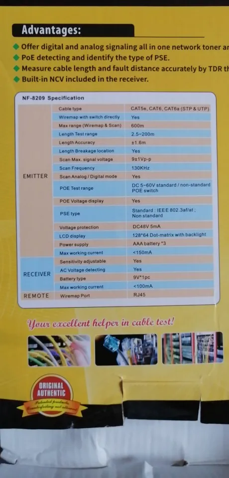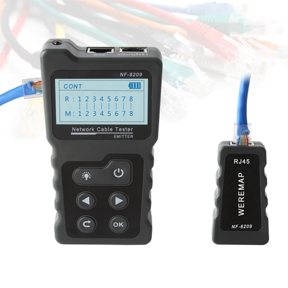 NF-8209 дюймовый ЖК-дисплей, измерение длины кабеля локальной сети, проверка POE, Cat5, Cat6, инструмент для проверки сети локальной сети, сканирующий кабель, Wiremap Test er